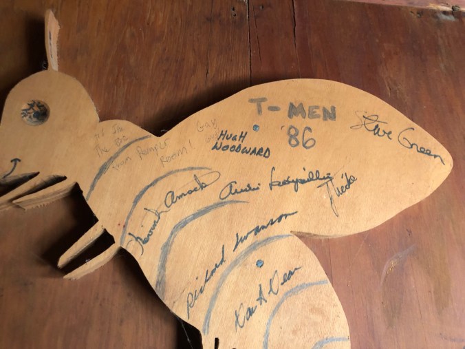 We found our old cabins and Steve even found a plaque that he’d signed along with his other transportation crew members.