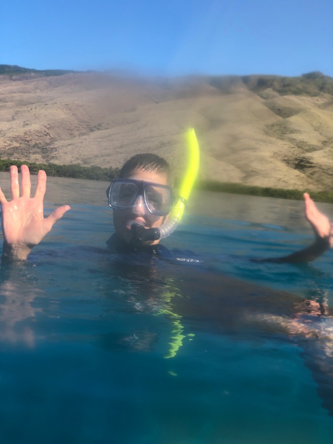 Our first big event was snorkeling on Molokai’s 30+ mile coral reef. It’s the biggest in Hawaii and there was no one there! We were the only boat on the water and we had crystal clear calm waters all to ourselves.