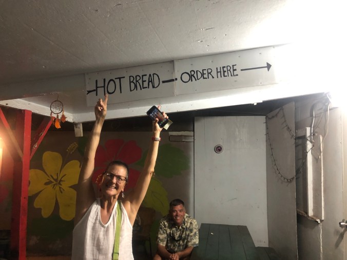 One “must do” on Molokai is to get hot bread in the evening from the bakery in the alley. The local bakery, Kanemitsus only sells this delight from 7:30 -10:00pm and only from the window hidden down an alley off the main street in town. What is hot bread?