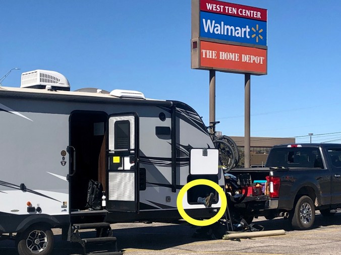 Our journey was not without a small challenge that Steve met head on. Our kitchen faucet started leaking after our time in Patagonia and it soon became apparent that the cheap plastic faucet that came with the trailer needed to be replaced. So, on our way through El Paso, we set up shop in the parking lot of Home Depot and made the repair. Steve had to do some contortions to get to the pipes, but he got it done!