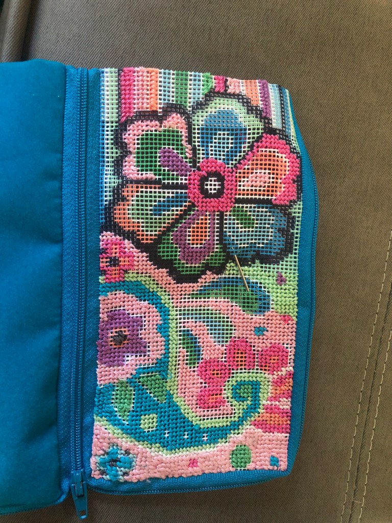 Some folks have been asking how we spend our “downtime” while on the road. Well, Steve is sticking to his exercise routine and either biking or running from the campsite every day. That gives me time to write, clean up, or pursue my newest “hobby,” needlepoint! I type that with sarcasm because I really don’t know what I’m doing but it’s been fun to fiddle with something while icing my foot. I can’t say this is going to be a life-long hobby but it’s kept me busy.