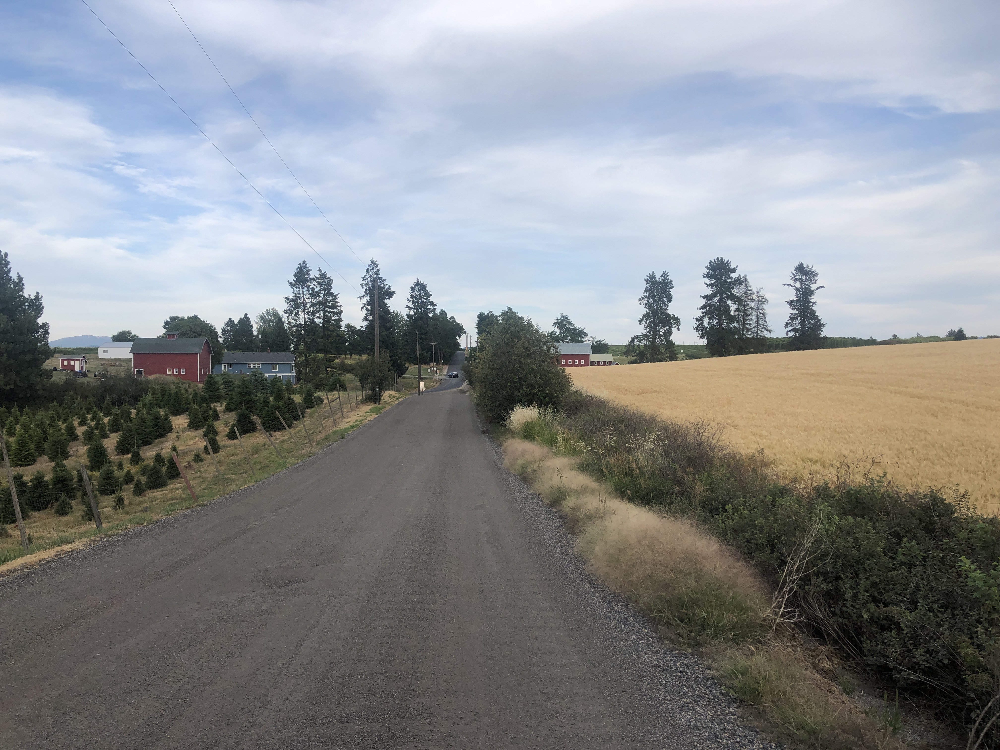 After a few days in Leavenworth we drove about four hours east to the Spokane area. Our first stop was at Walter’s Fruit Farm, a Harvest Host property, which allowed us to park in their field. Along with one other RVing couple who parked next to us, we enjoyed the beautiful farm views and visited a local brewery that was just down the road. This area north of Spokane is called Green Bluff and has over 20 farms open to the public. Fruit and vegetables of all kinds were available right out of the ground. Too bad we were only there one night!
