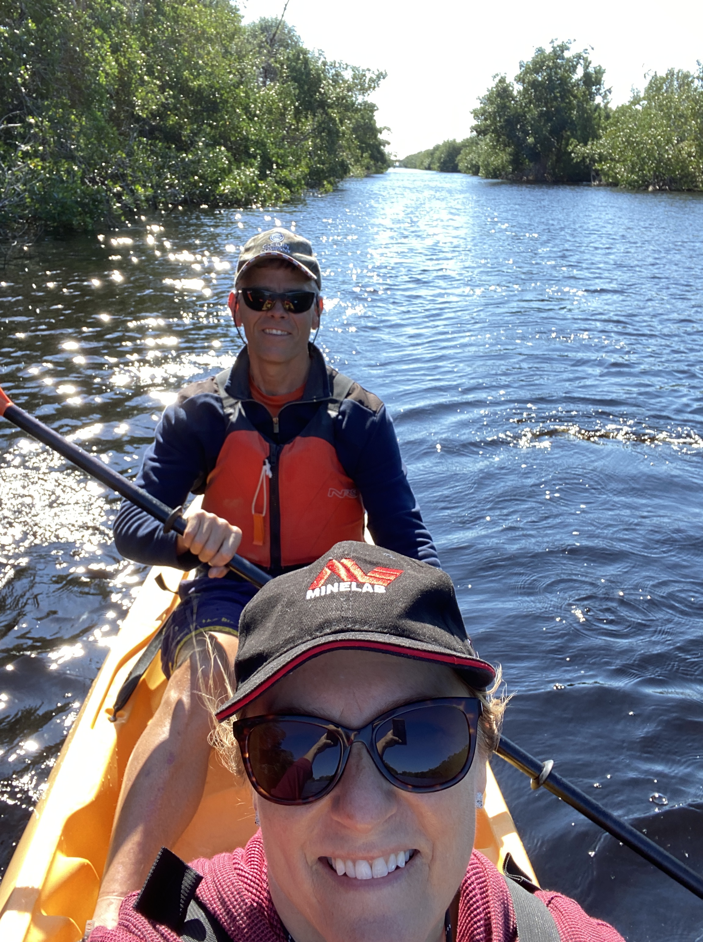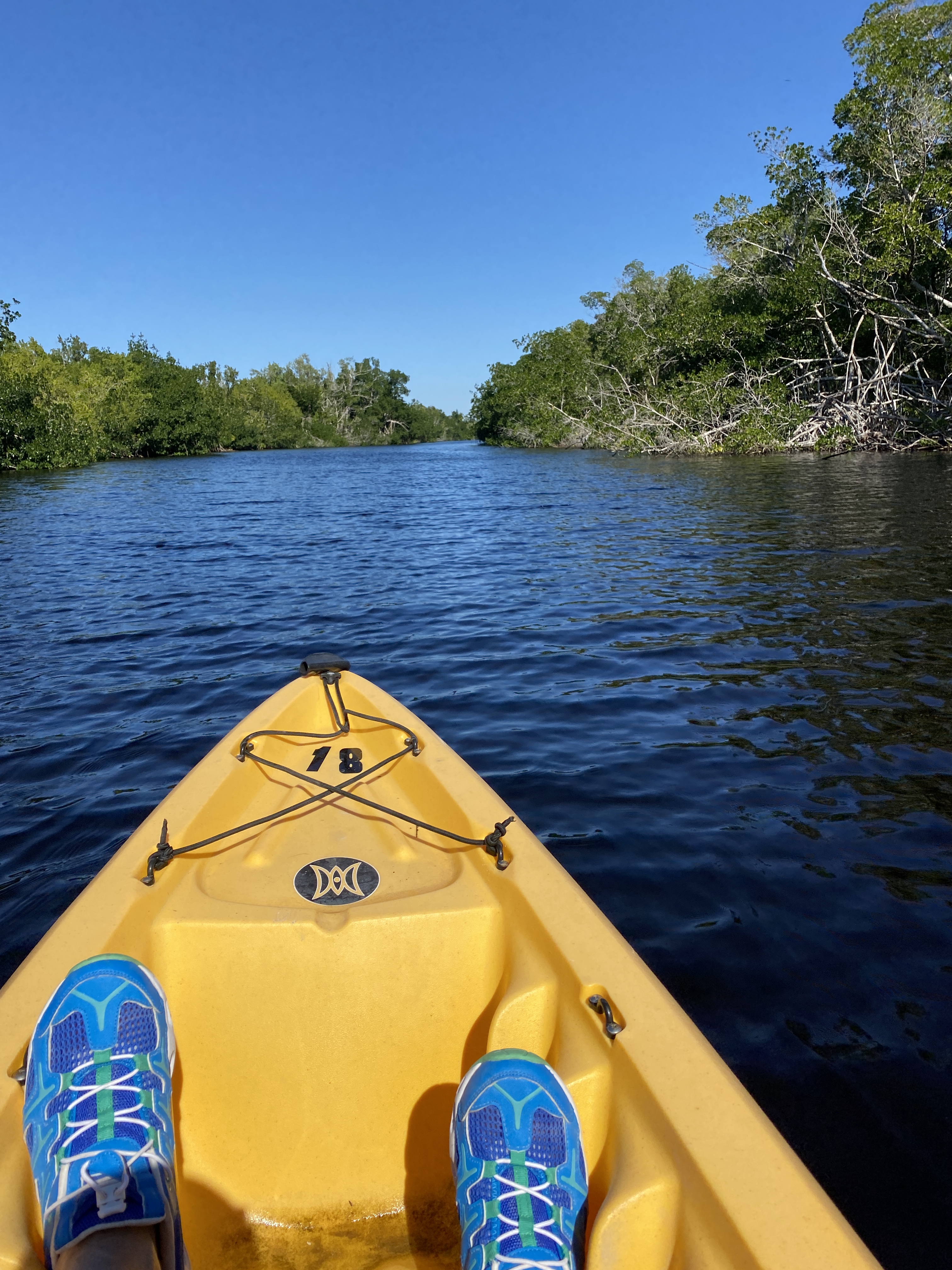 At the Flamingo area, about 30 miles from our campground, our intent was to get on the water. Immediately upon walking into the marina area we saw a giant crocodile swim right next to the docks. Minutes later we were in a kayak in the same area. Luckily by then the croc had moved along!