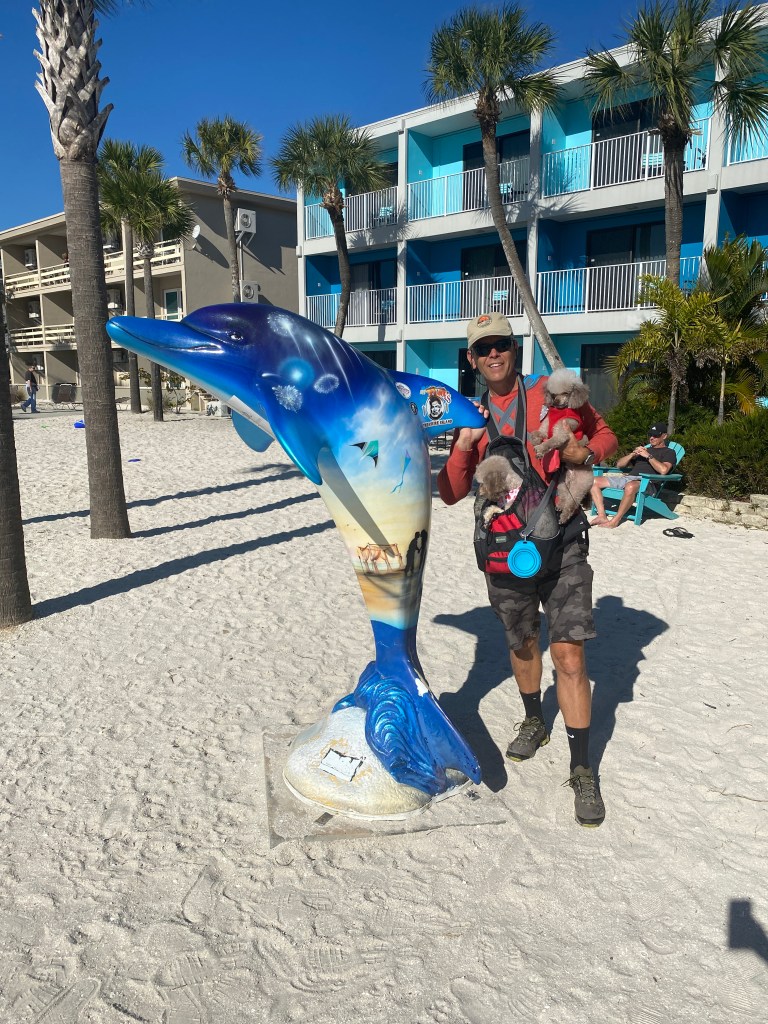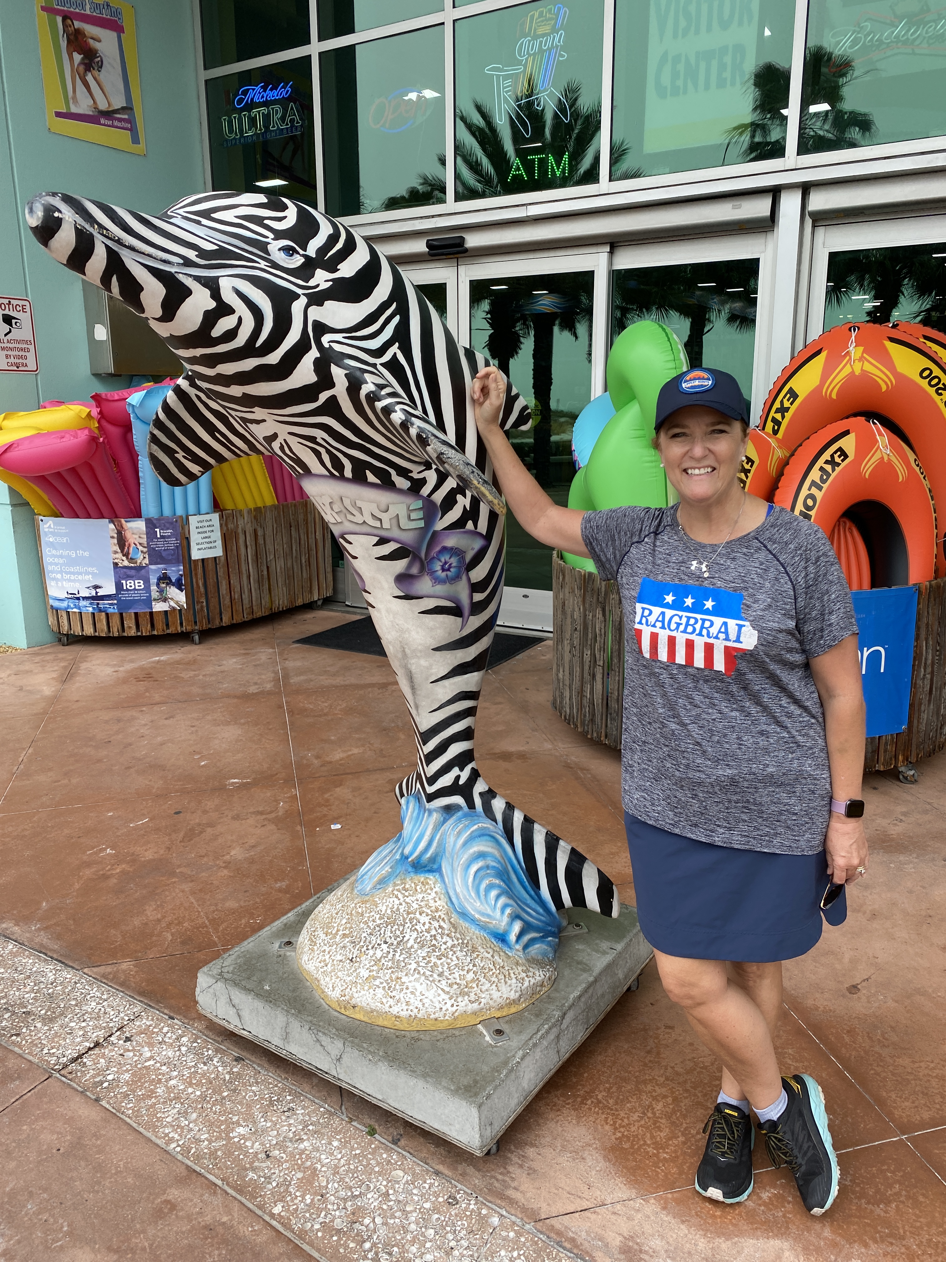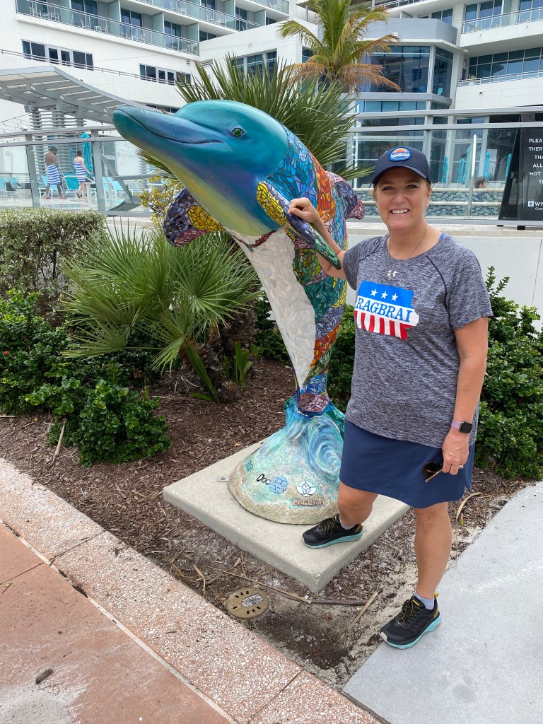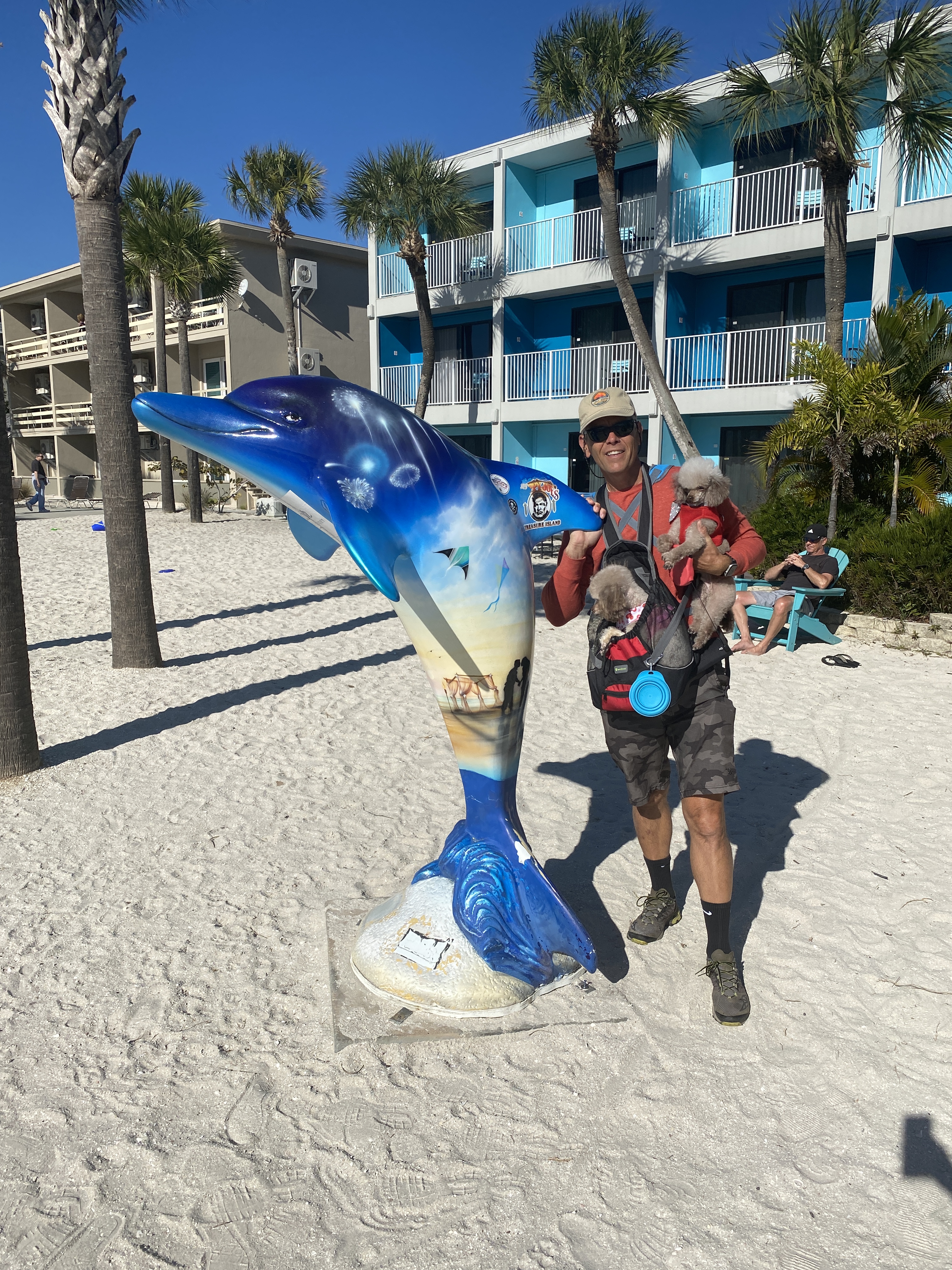 Clearwater Beach also has a great boardwalk along the water. Steve was scheduled to do a marathon here but the race has been postponed, so we just explored. Brightly painted dolphins, as many as 120 of them, are scattered throughout the Dolphin Trail. We tried to capture a few of our favorites along our walk.