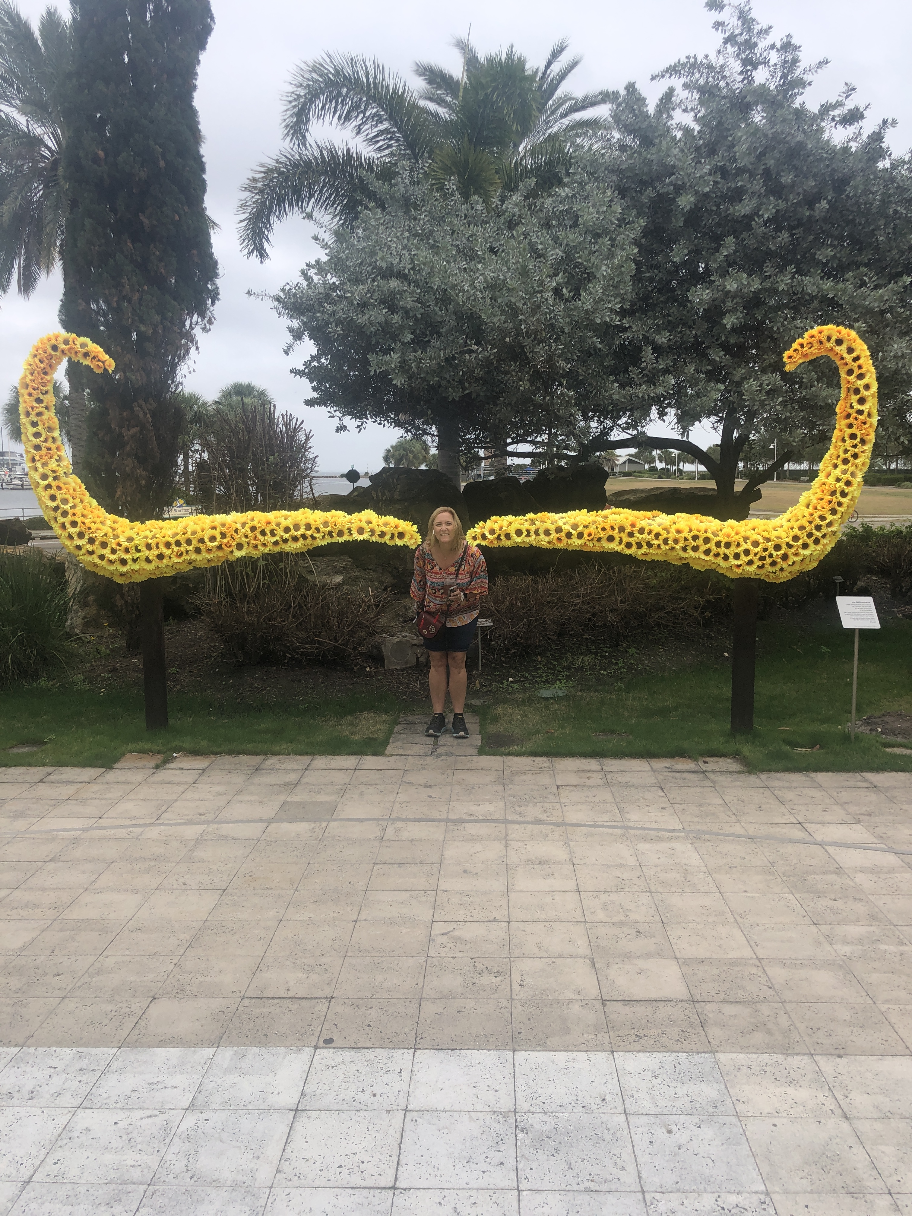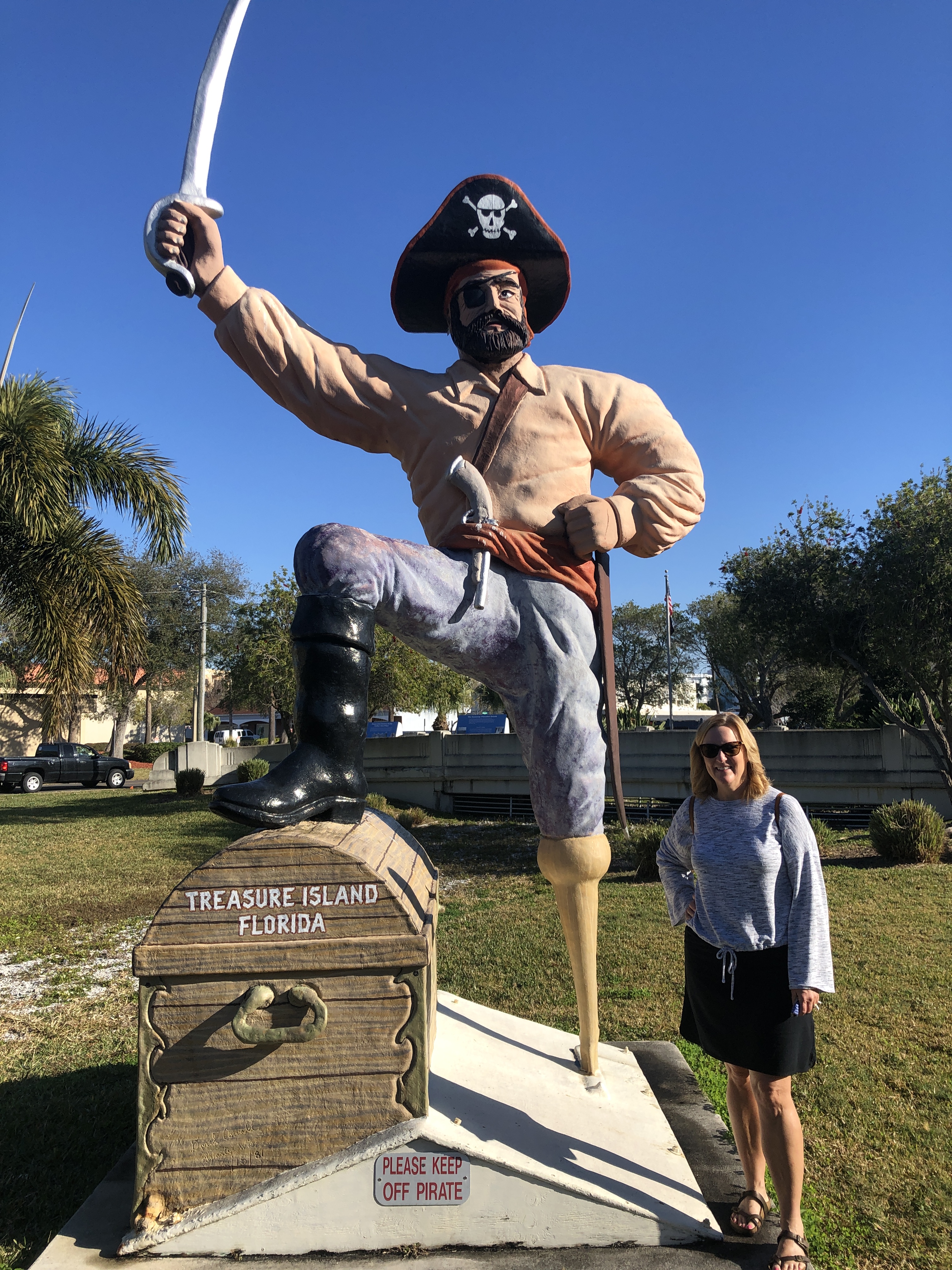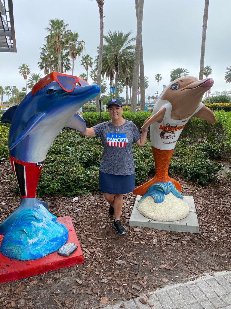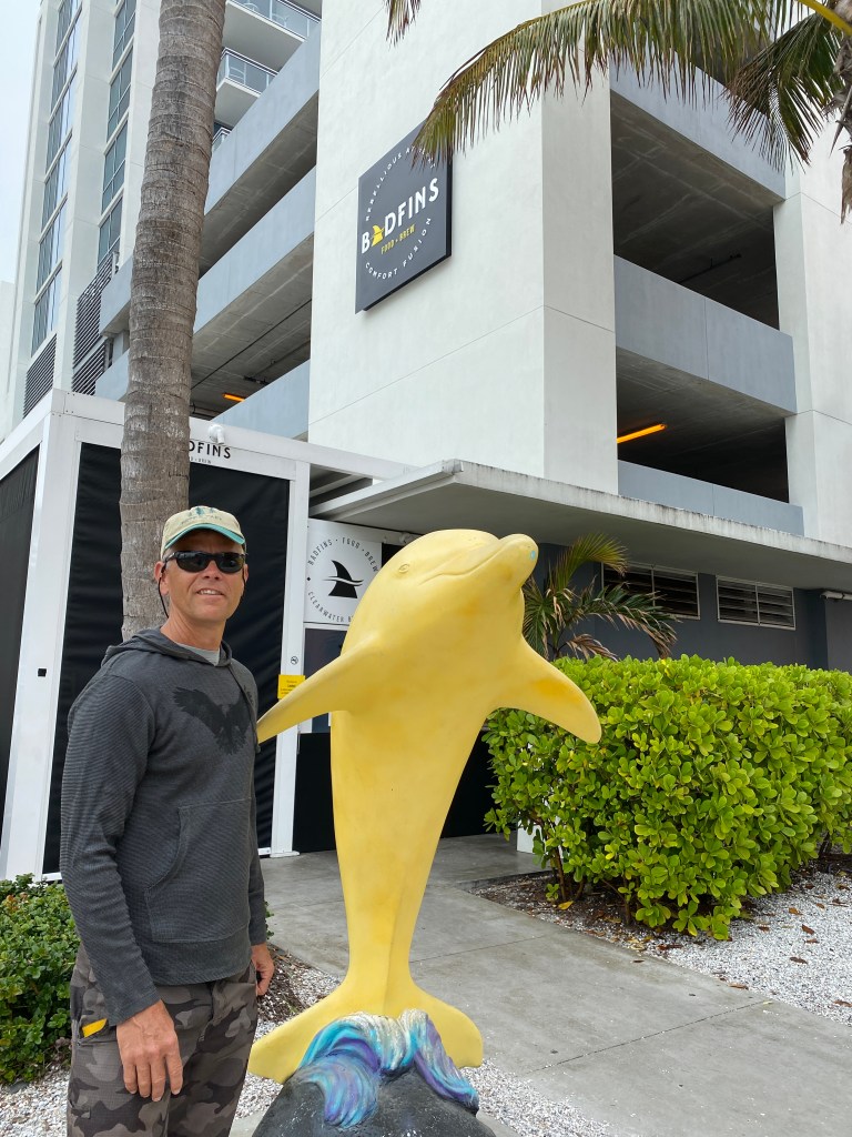 Clearwater Beach also has a great boardwalk along the water. Steve was scheduled to do a marathon here but the race has been postponed, so we just explored. Brightly painted dolphins, as many as 120 of them, are scattered throughout the Dolphin Trail. We tried to capture a few of our favorites along our walk.