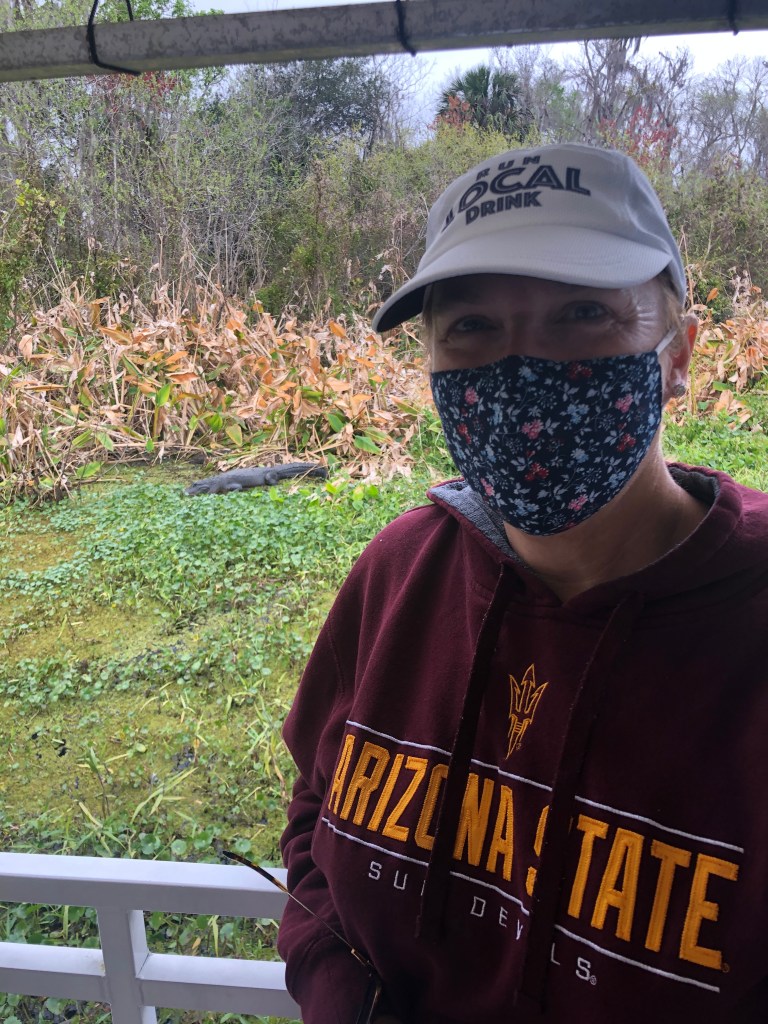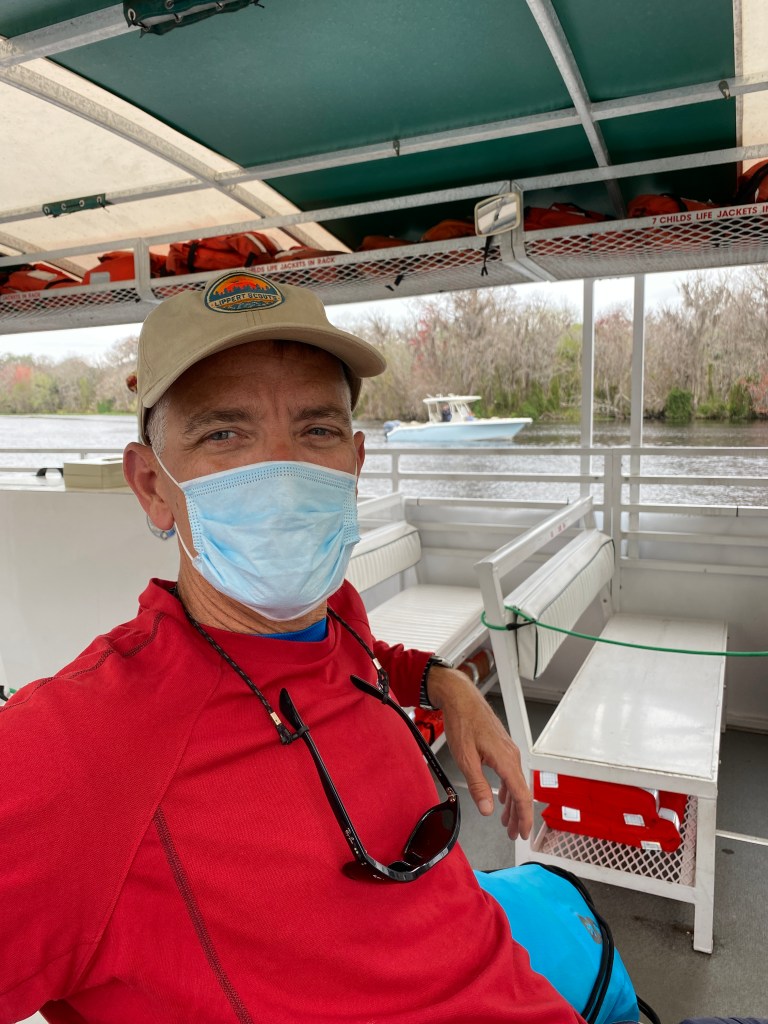 We took the socially distanced cruise along the St. Johns River to learn more about the area and its wildlife. The St. Johns is Florida’s longest river at 310 miles and is one of the few rivers in the U.S. that flows northward. Both fishing boats and pleasure boats ply along throughout the day.