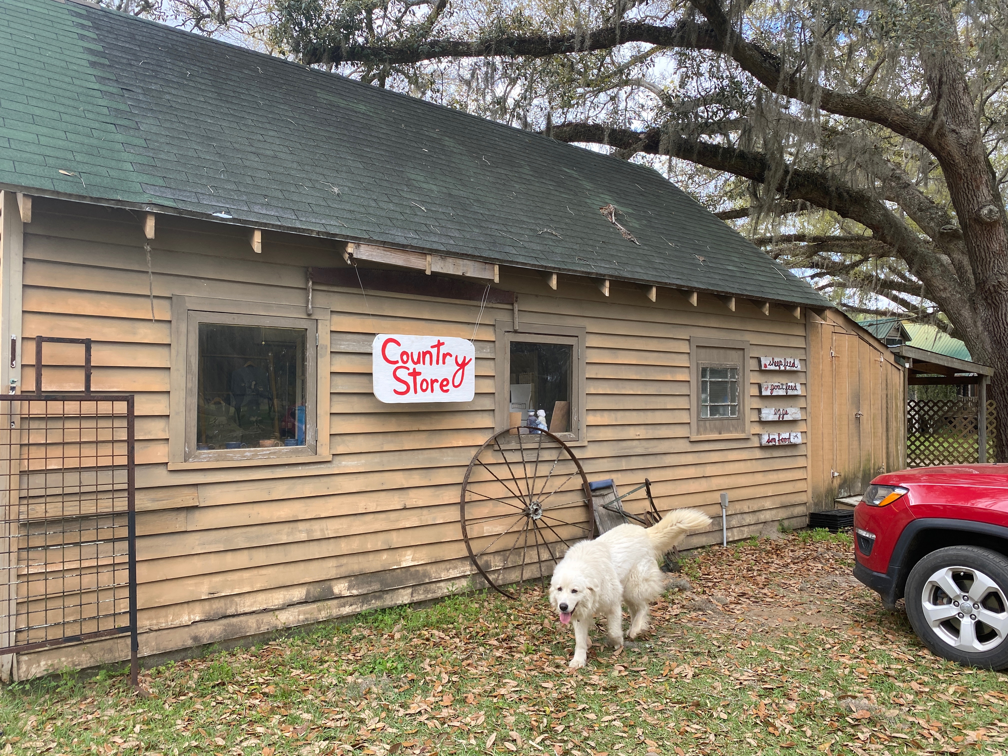 For example, after leaving Georgia we stopped for a night at Golden Acres Ranch in Monticello, Florida. At the ranch we were introduced to their friendly herd of Tennessee Fainting Goats and a number of other farm animals including sheep, chickens, guinea hens, and the sweetest pregnant dog, Honey.