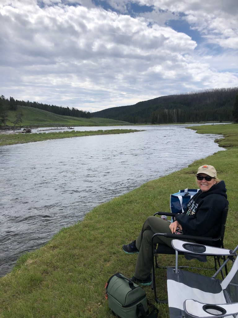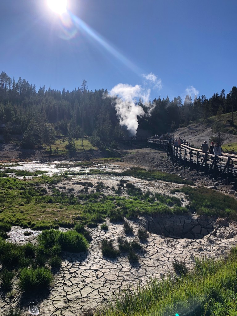 Hot water spewed out the top of the rock formation that sits aside the Firehole River. Massive amounts of steam billowed towards the sky, and then we were sprinkled with a mist that was cool and refreshing. It almost didn’t seem real. Steve got a good video to show you what we saw. Wow…just wow!