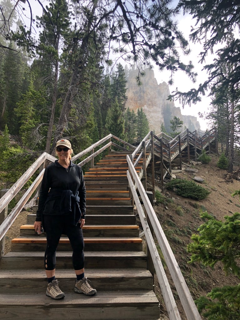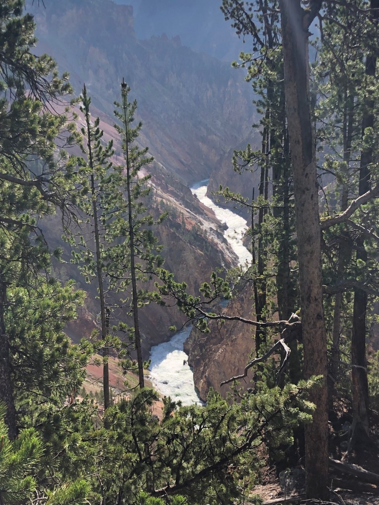 In addition to hiking the “brink” trails we also walked the north rim trail to the end. All along the 2 1/2 mile trail we could see into the canyon that has been carved by the Yellowstone River over millions of years. Words like “spectacular,” “magnificent,” and “incredible” are not enough to describe the grandeur of the Grand Canyon of the Yellowstone.