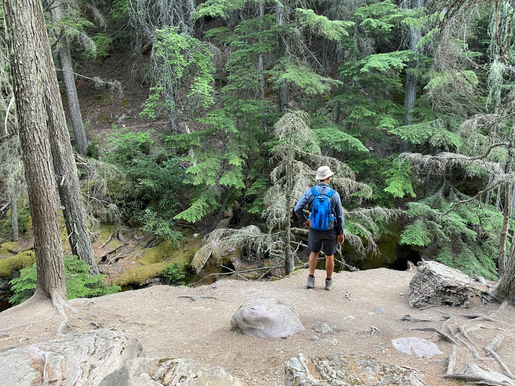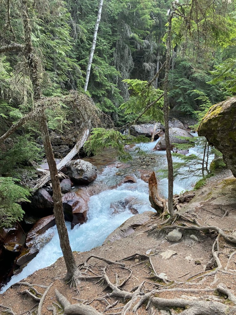 Thanks to Judy and Larry, we were able to take a few short little hikes and not worry about Mia and Bob. Here are a few photos from our hike to Baring Falls, which included an encounter with a cute deer we named John. Can you find Steve in the bottom photo of this section?