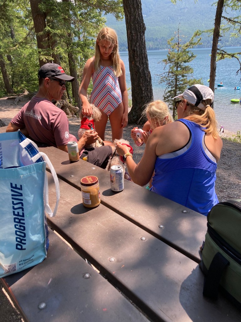 We try to find a special place for lunch each day and the Fish Creek Picnic Area on the north shore of Lake McDonald was the perfect place. We enjoyed the cool of the shade and a breeze off the lake and met a nice Arizona family in the process!