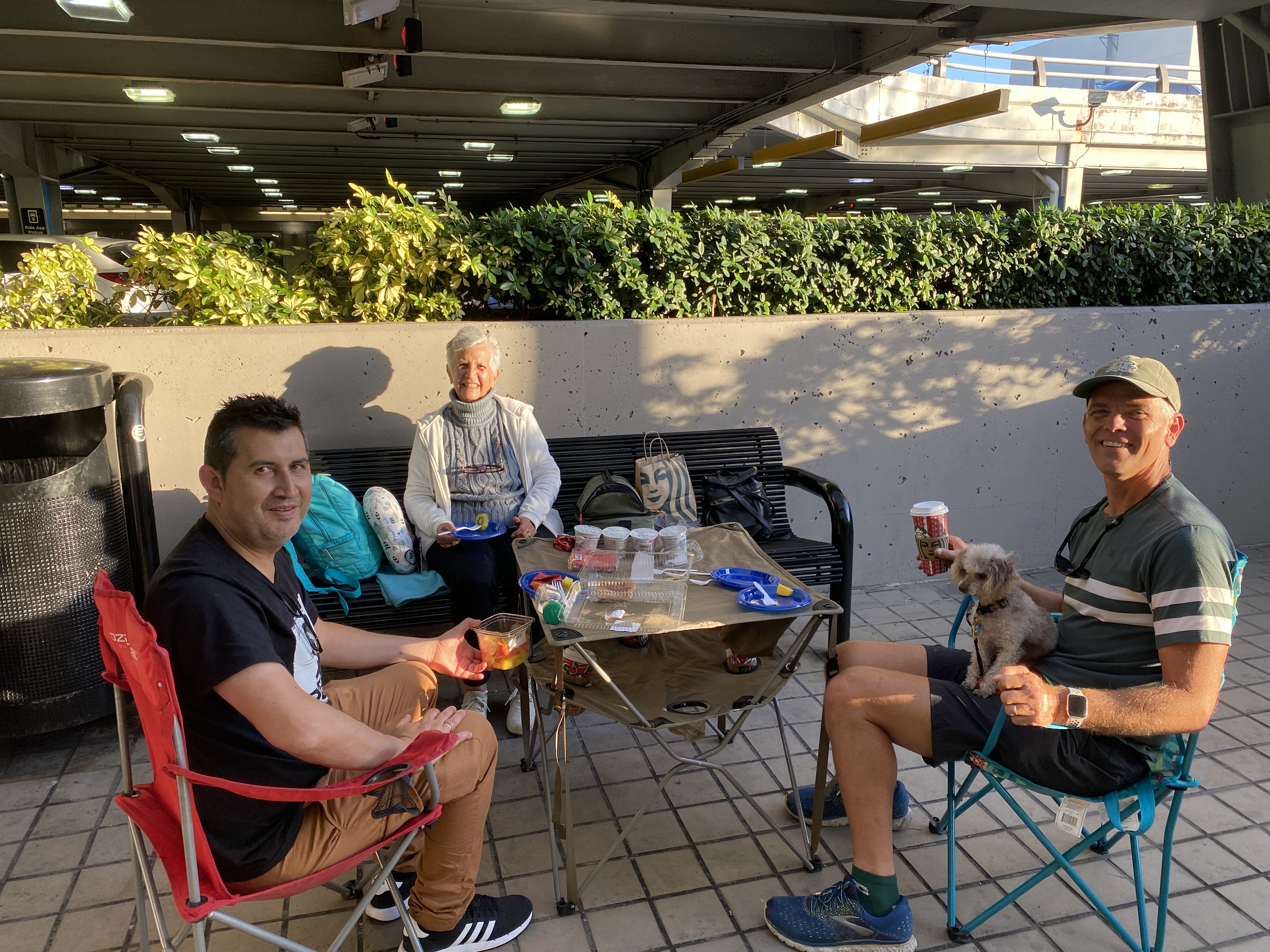 One day we had the opportunity to travel back to the Miami International Airport to meet up with our dear friend Lucia Idarraga and her nephew Alvaro who were passing through on their way back to Colombia. There weren’t many options for breakfast in the very crowded airport terminal so we set up our own breakfast cafe curbside. It was a beautiful morning and we were thankful to spend some time with our special friends.