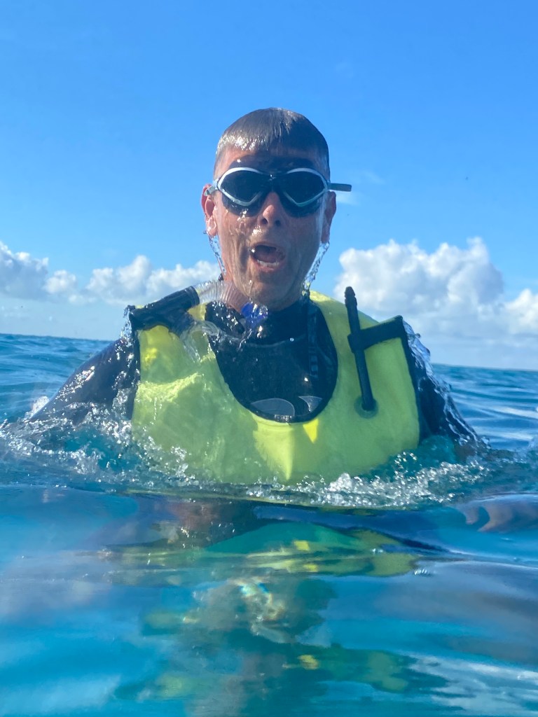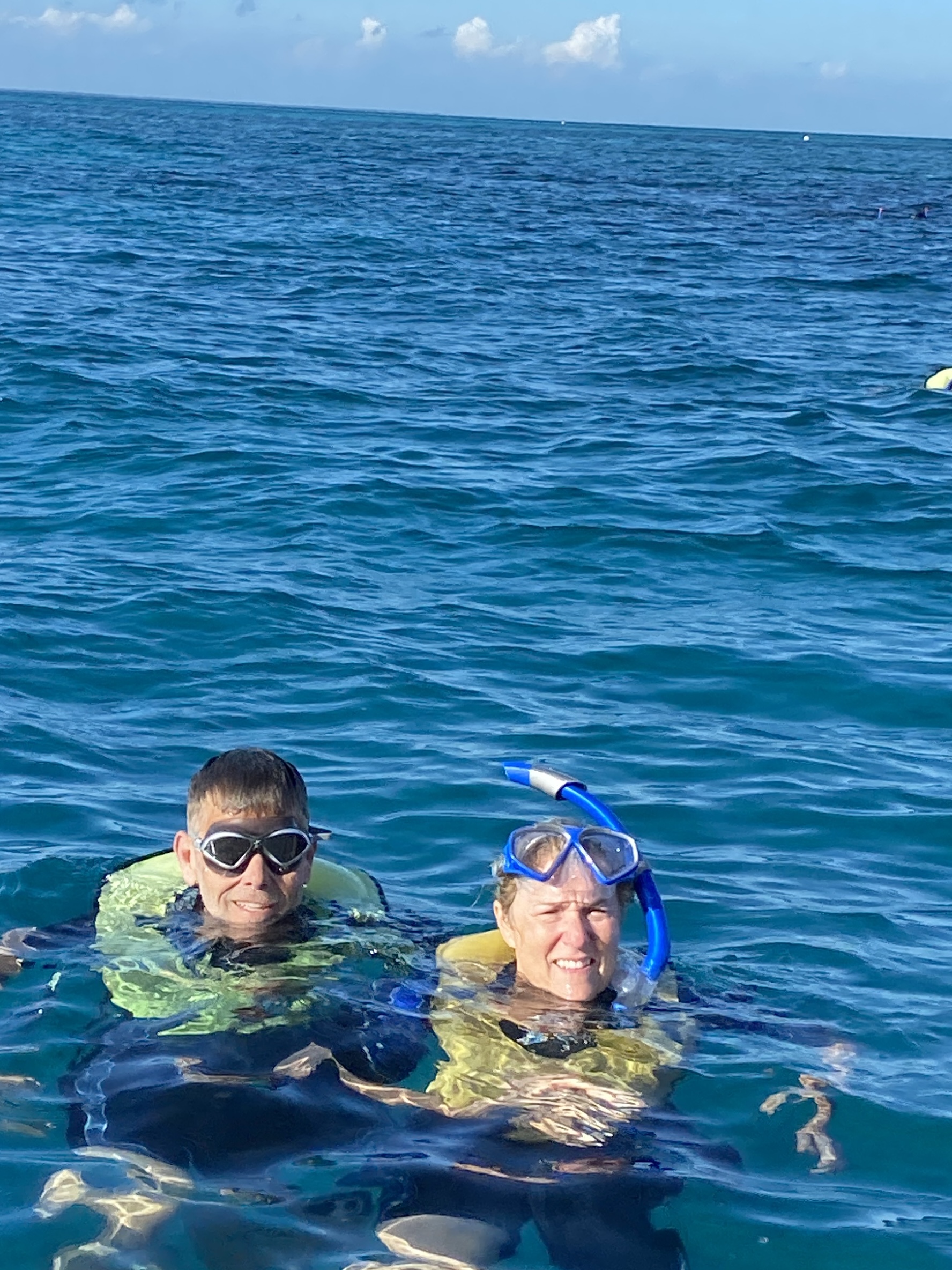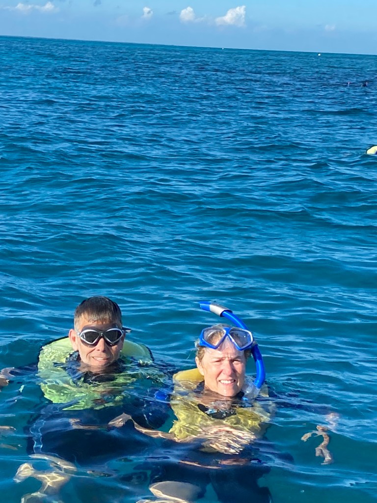 The park itself is mostly underwater. We took the snorkeling excursion to the reef twice and were amazed with the clarity of the water and the health of the reef. The water temperature is about 76 degrees, so it’s possible to swim and snorkel with just a swimsuit. We have our wetsuits with us, so we used those just for a little extra comfort. Lots of colorful fish, calm blue waters, and plenty of sunshine made for two perfect afternoons, one of which we shared with Dave and Cinda.