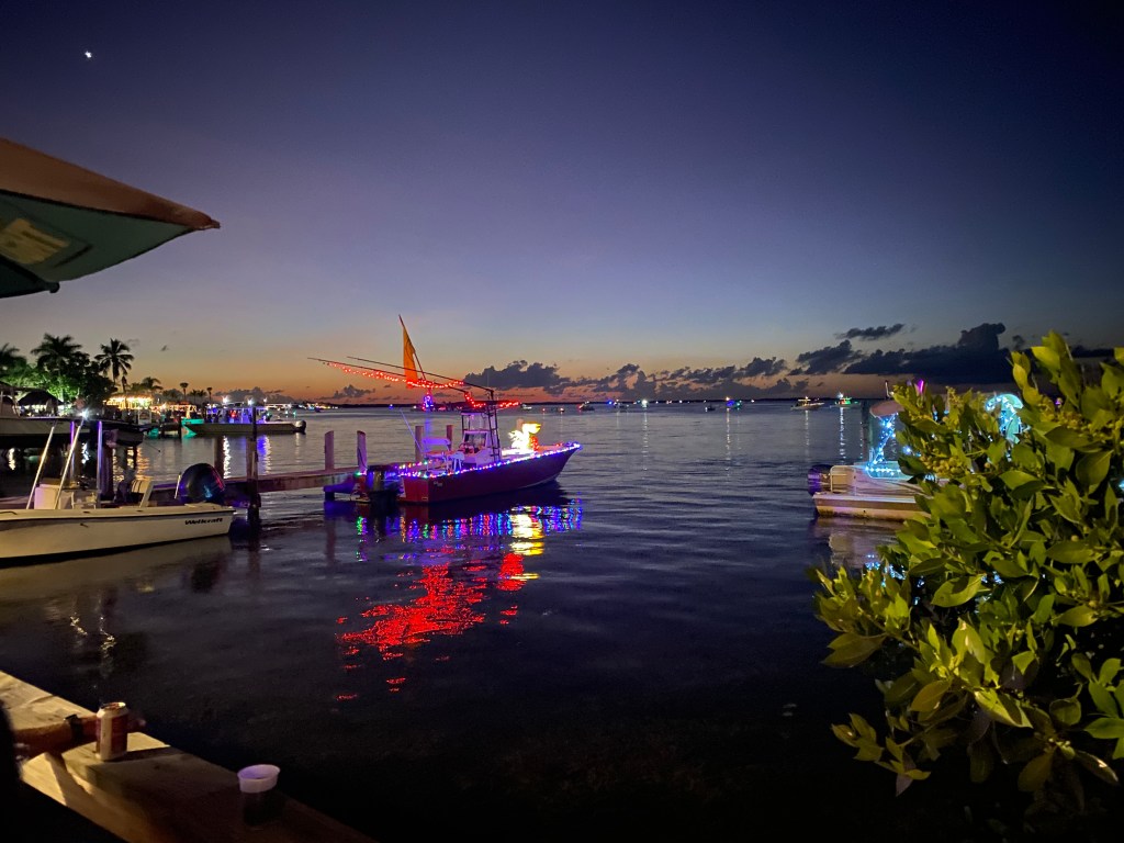 We met a number of locals along the way who were happy to recommend sunset watching locations and favorite restaurants. The Holiday Lighted Boat Parade was a fun local event we shared with our friends Dave and Cinda.