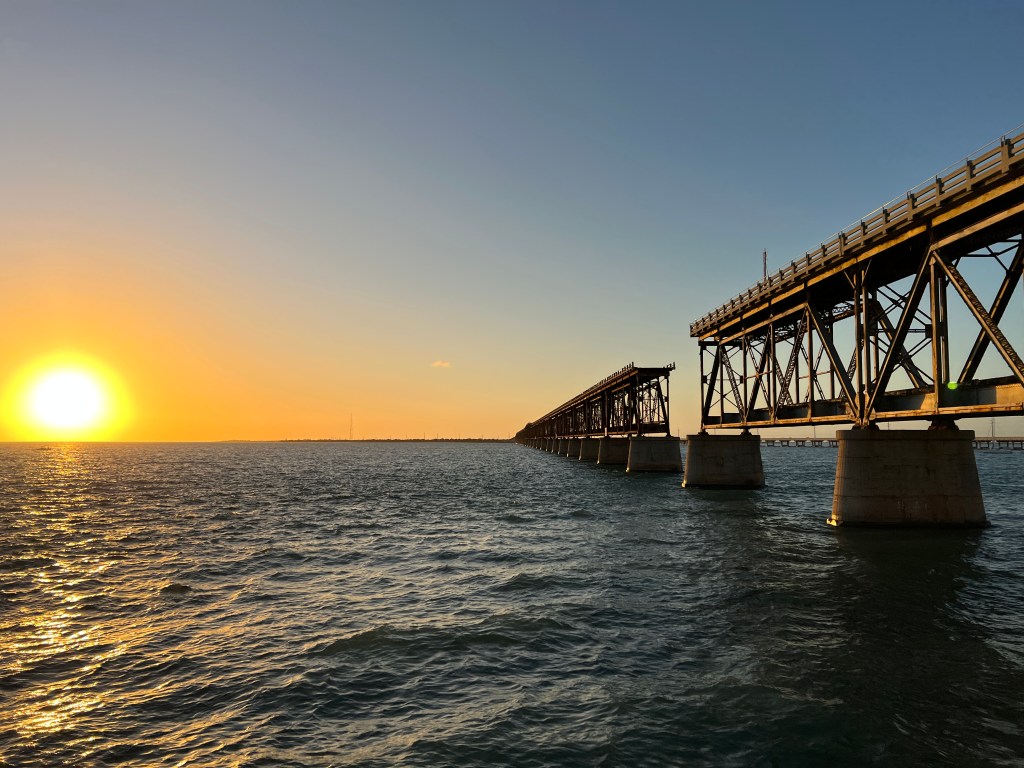 A highlight of the park is the broken bridge, a remnant of the park’s beginnings when Henry Flagler’s railway arrived on the key in 1908 en route to Key West. The 1935 Labor Day Hurricane swept a train off the tracks, destroyed miles of rail lines, and seriously damaged the bridge. The railroad never ran again. The bridge found new life when they laid a concrete slab on top and opened it to cars. Now it’s a picturesque viewpoint from which to watch the sunset and a silhouette that makes for great photos.