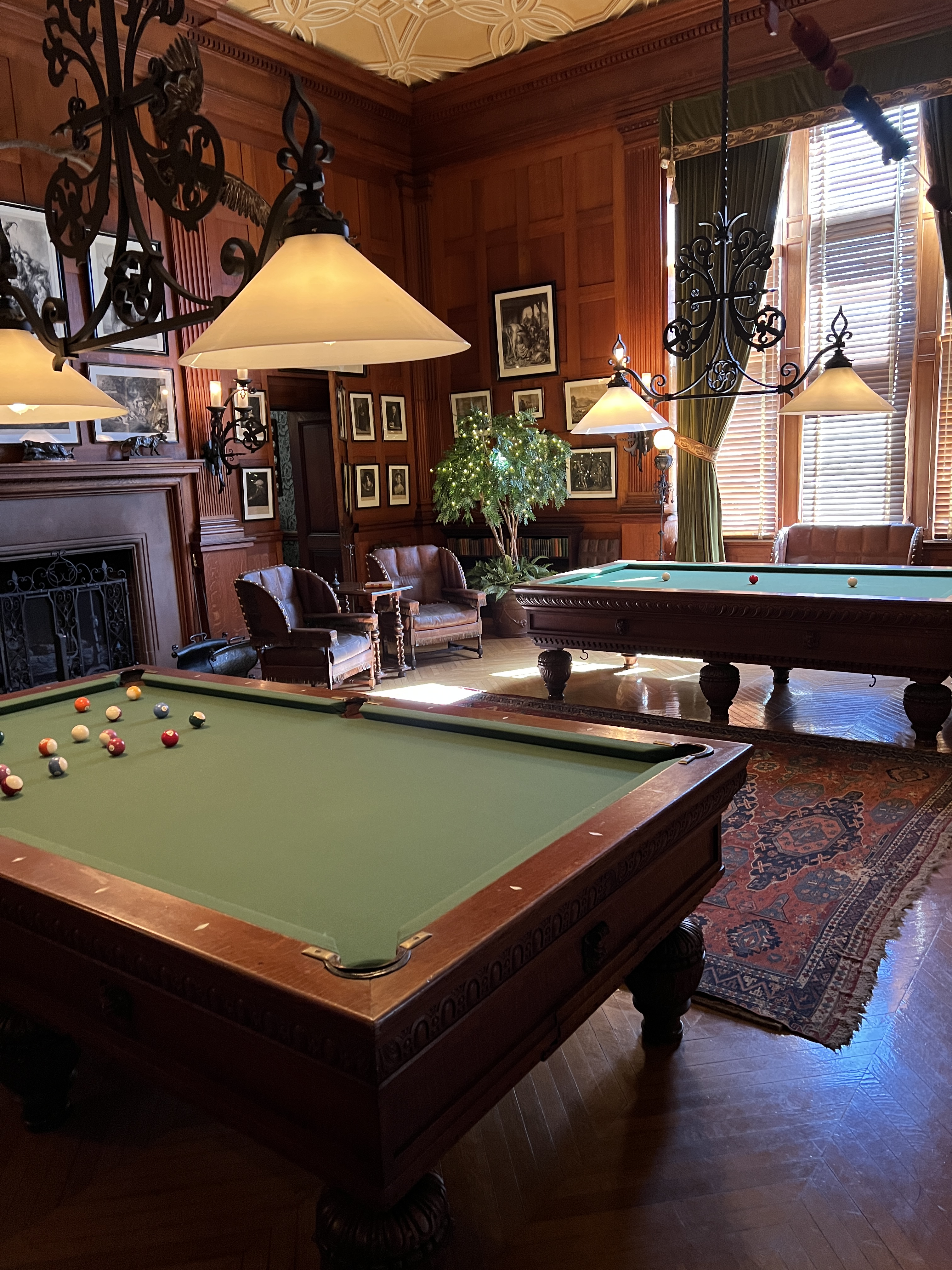 The 250-room chateau is considered America’s largest home with 16th century tapestries, 10,000 volume library, 65 fireplaces, an indoor pool, and an indoor bowling alley.