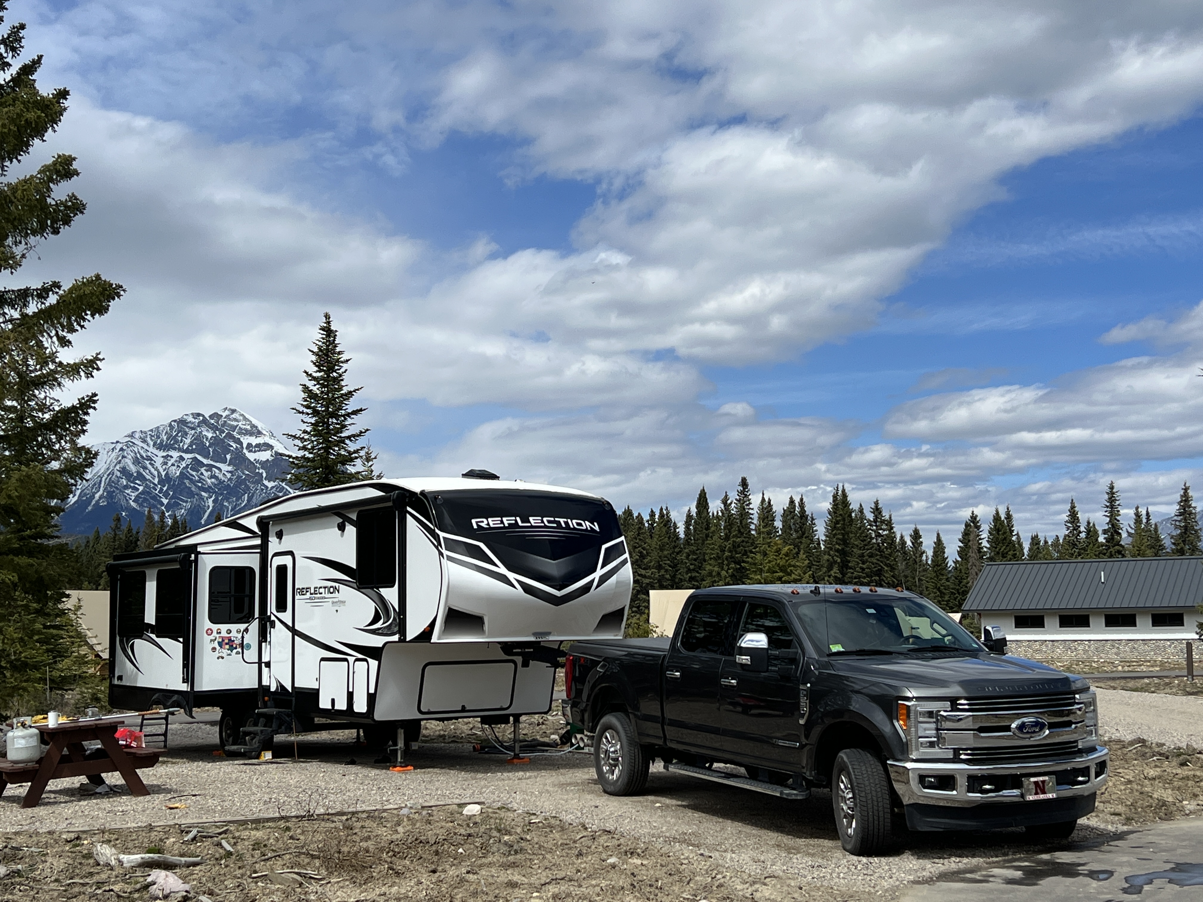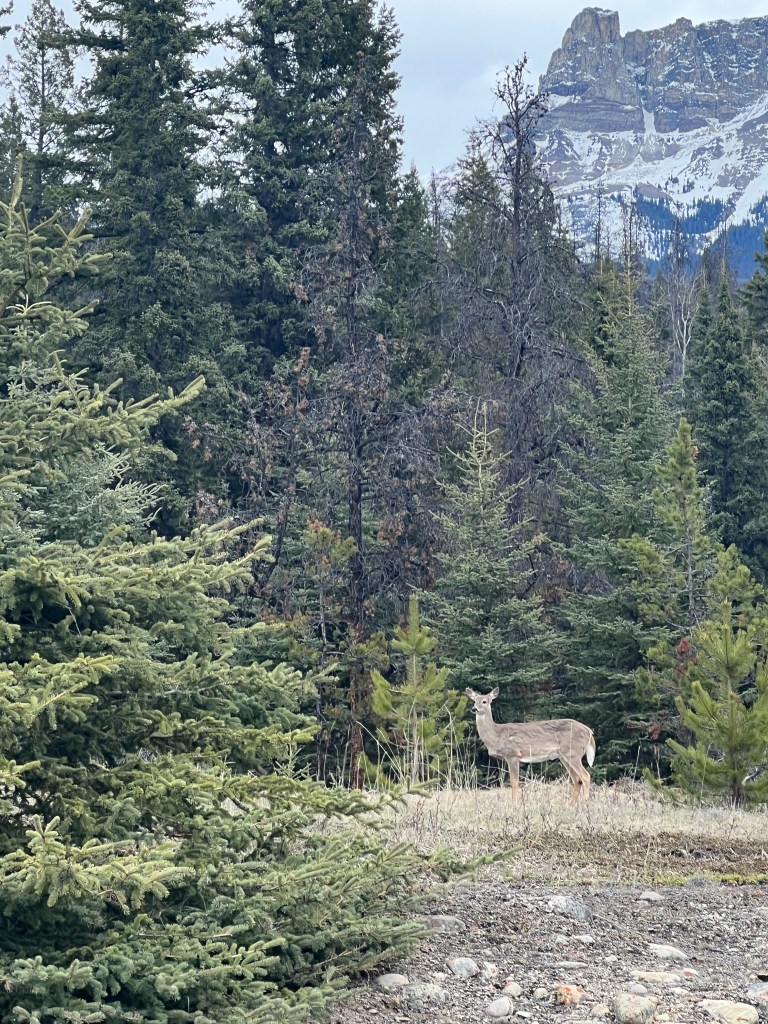 Our home in Jasper was the newly renovated Whistler Campground in Jasper National Park. While many of the trees have been removed to combat bark beetles, the 360-degree mountain views made up for it. Frequent visits from local elk made it even more beautiful.