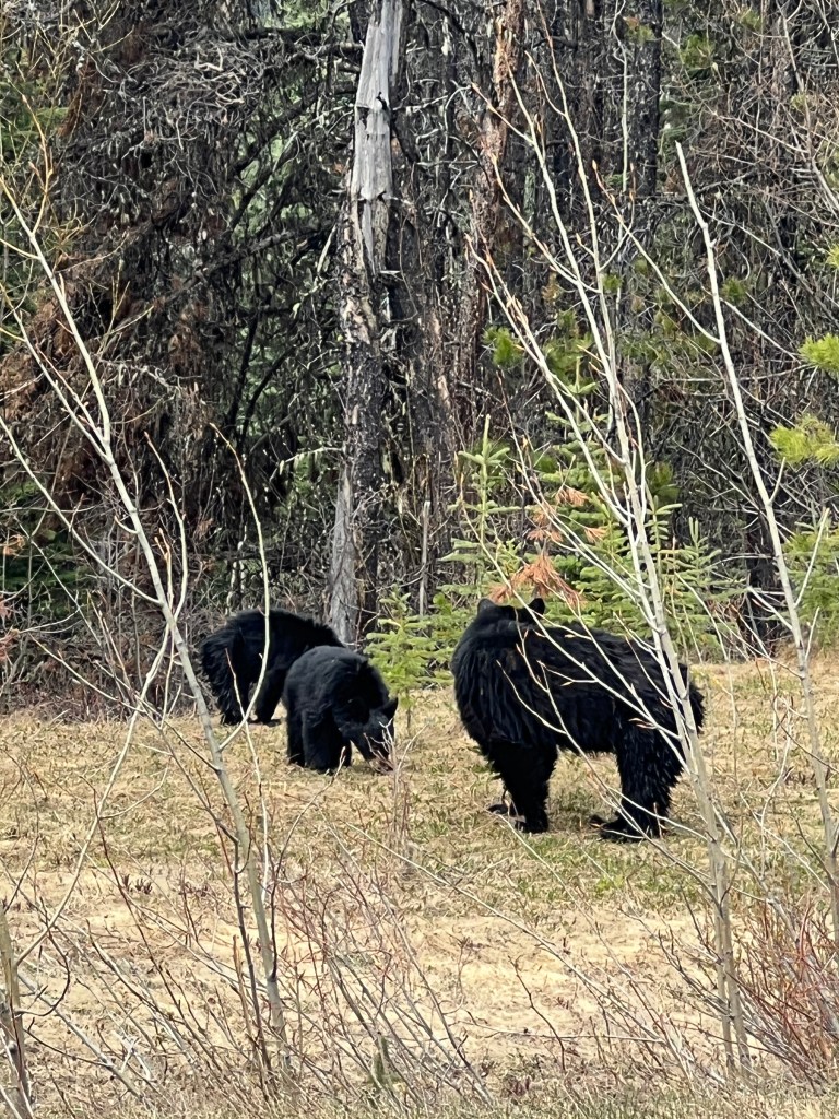 We also came across this mama Black bear and her two cubs eating on the side of the highway. Just incredible!
