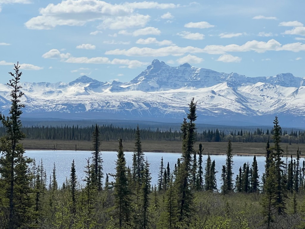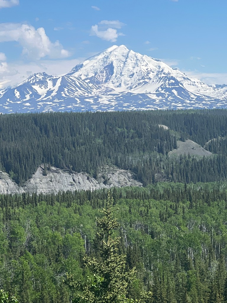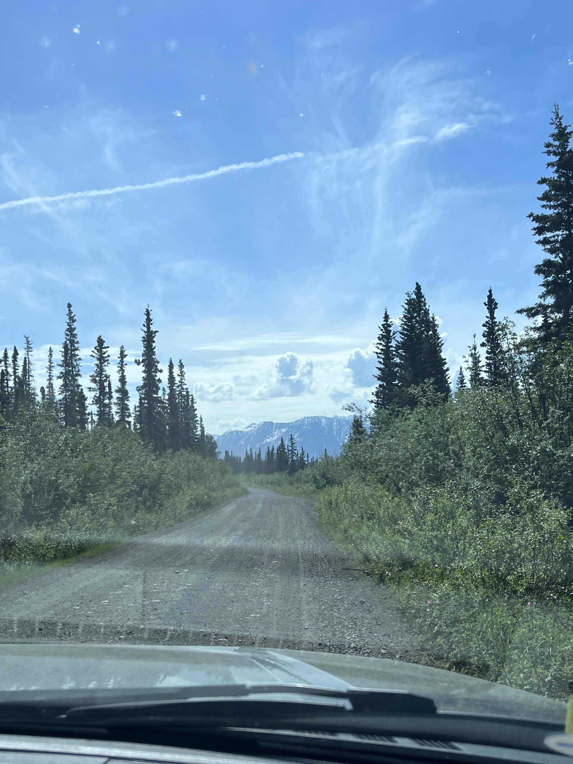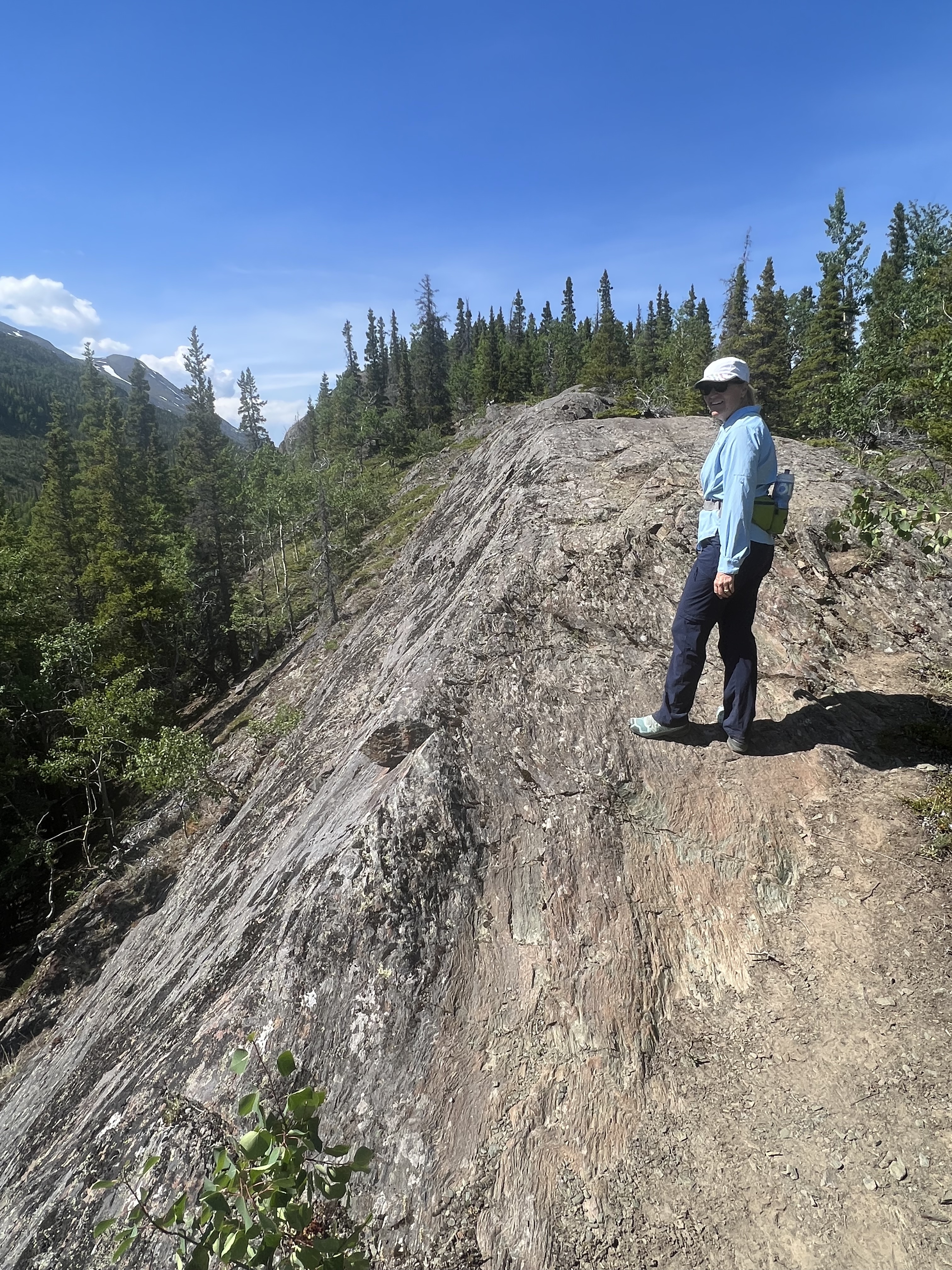 While on Nebesna Road we tackled the Caribou Crossing trail but found the creek crossing was still covered in ice. Still, our very remote three mile hike gave us a good look at the landscape.