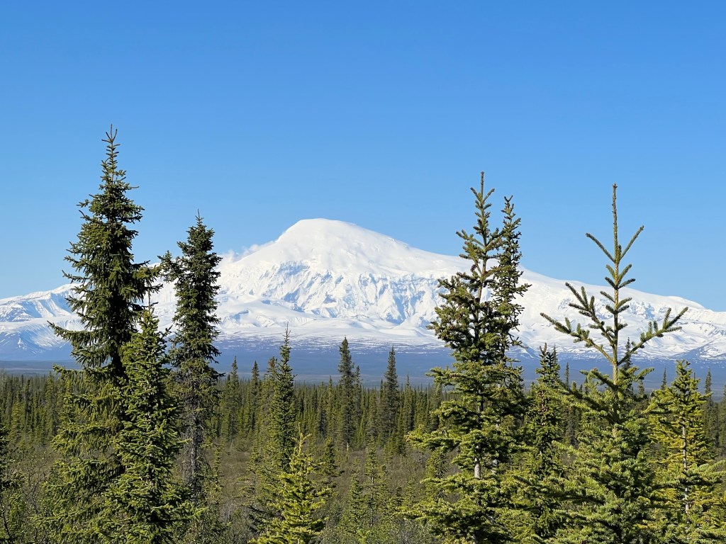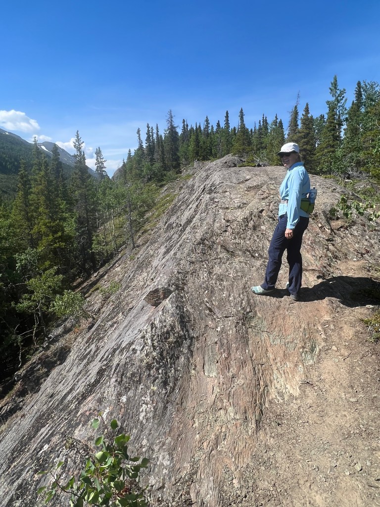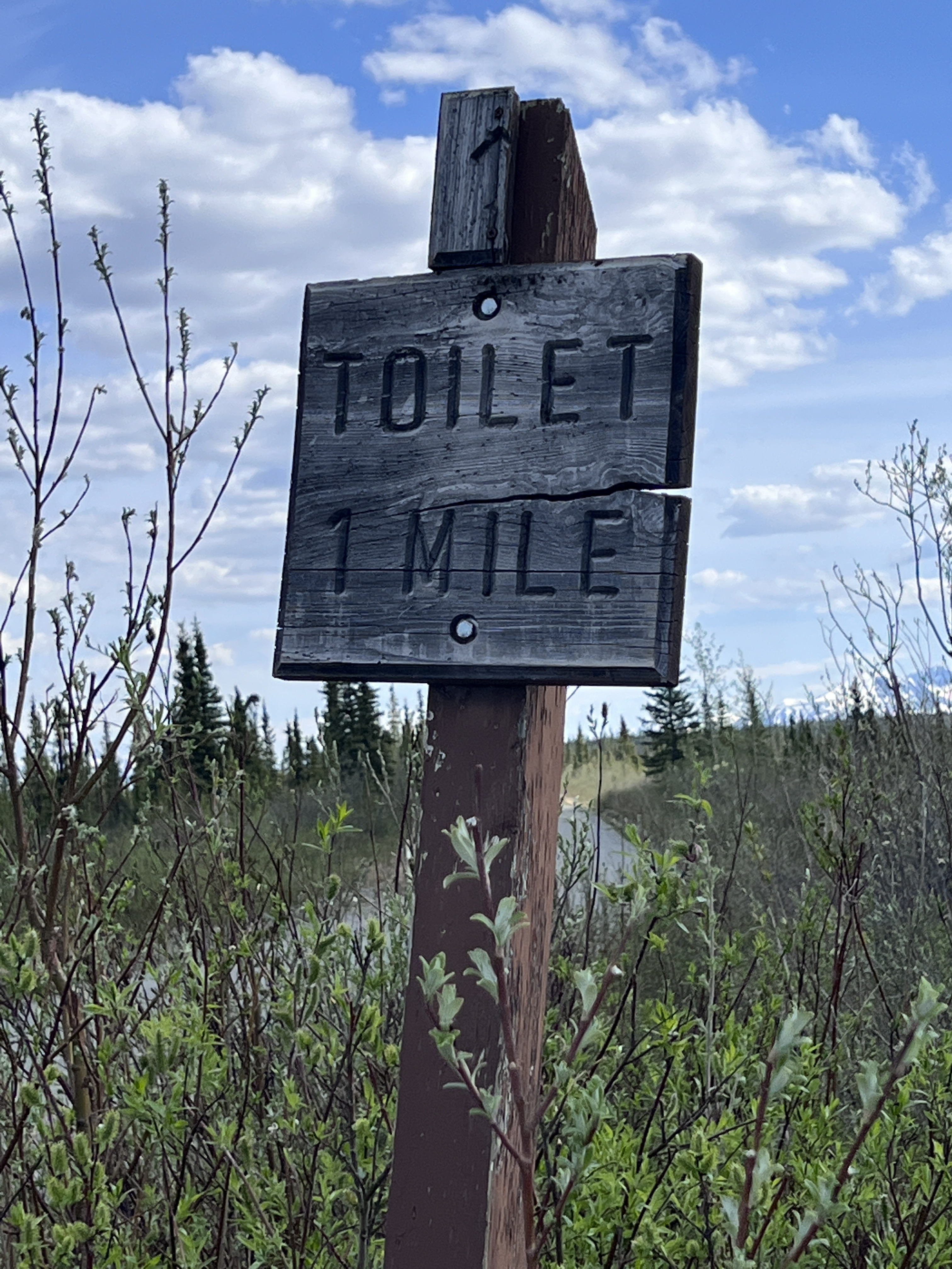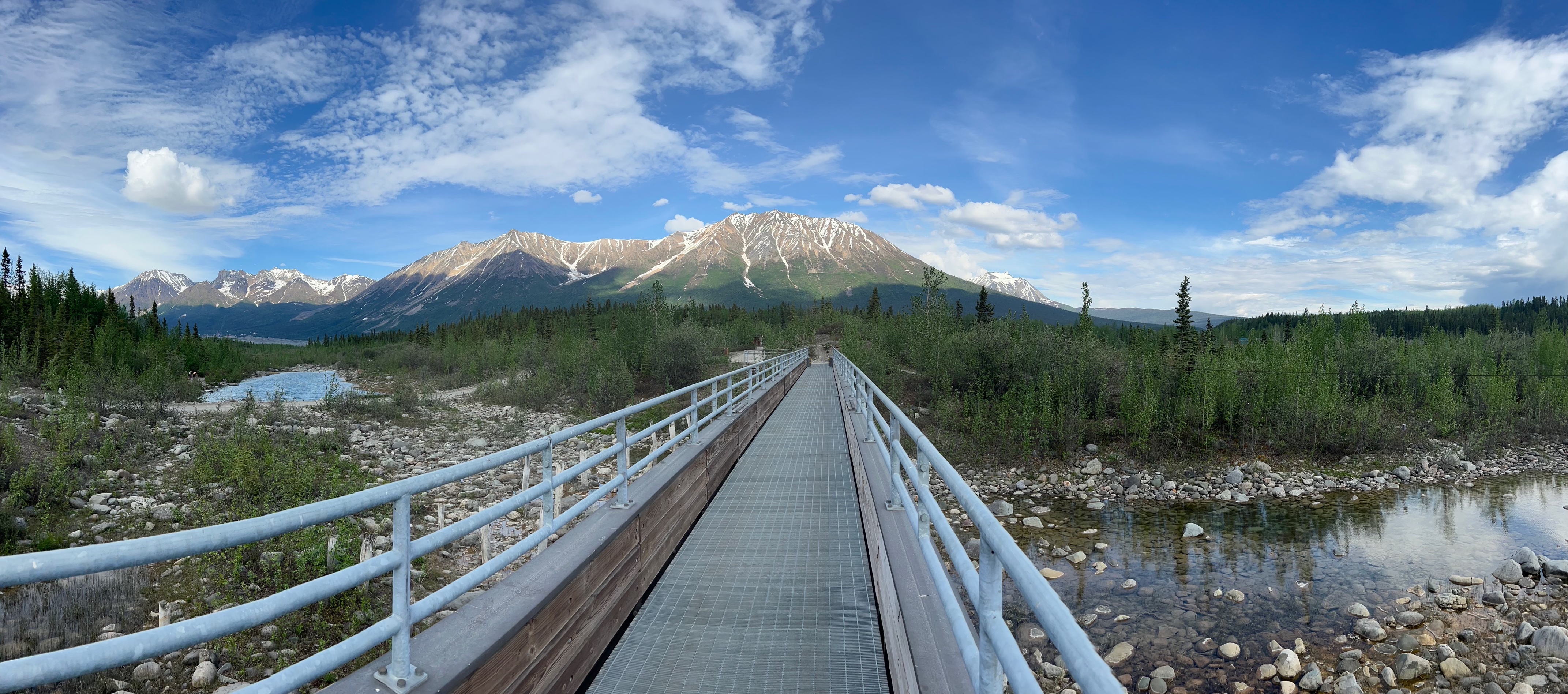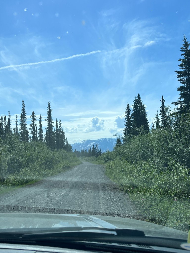While on Nebesna Road we tackled the Caribou Crossing trail but found the creek crossing was still covered in ice. Still, our very remote three mile hike gave us a good look at the landscape.