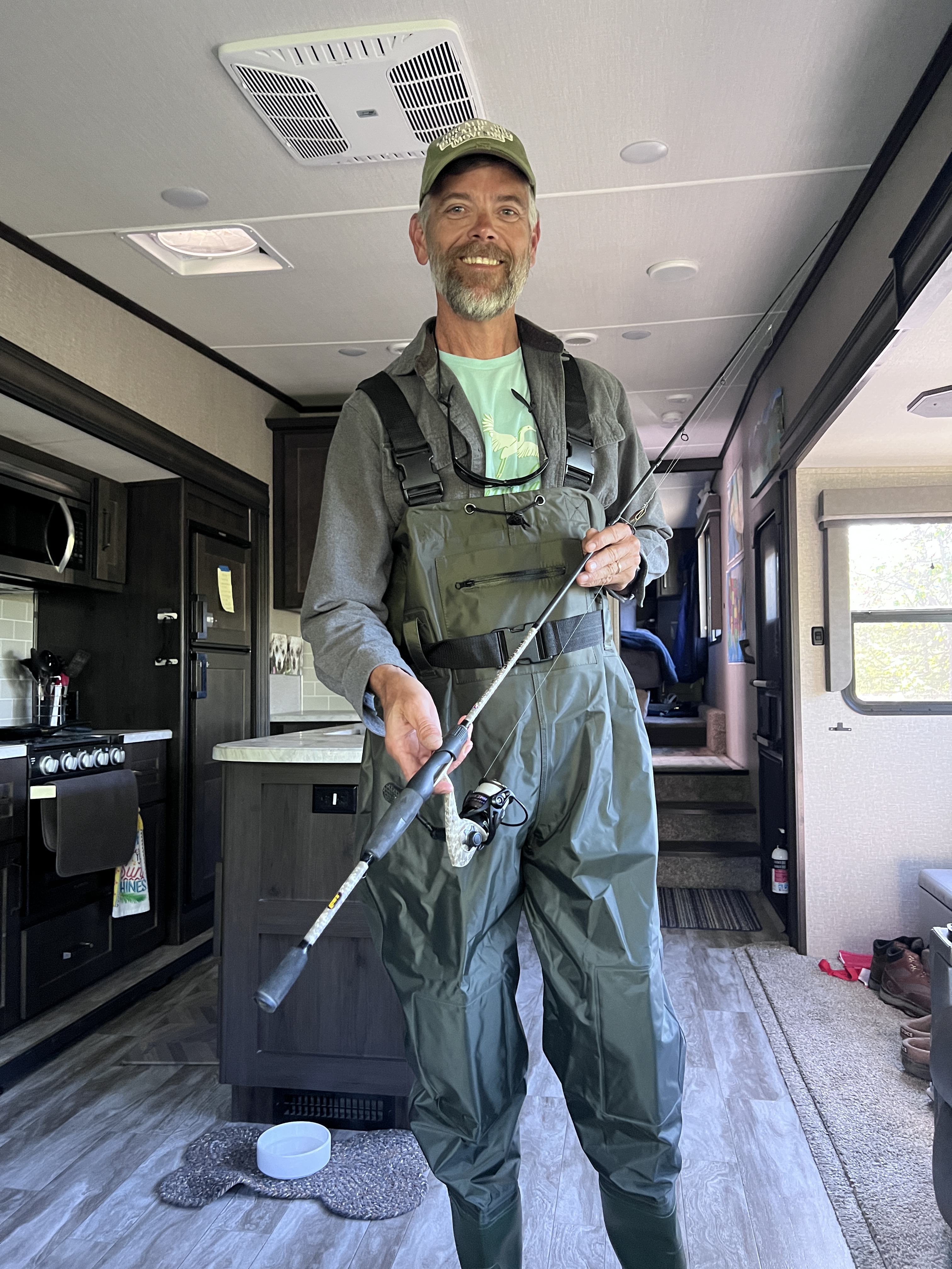 Steve even got in some fishing with his new waders at this stop. He didn’t catch anything but at least he knows they don’t leak!