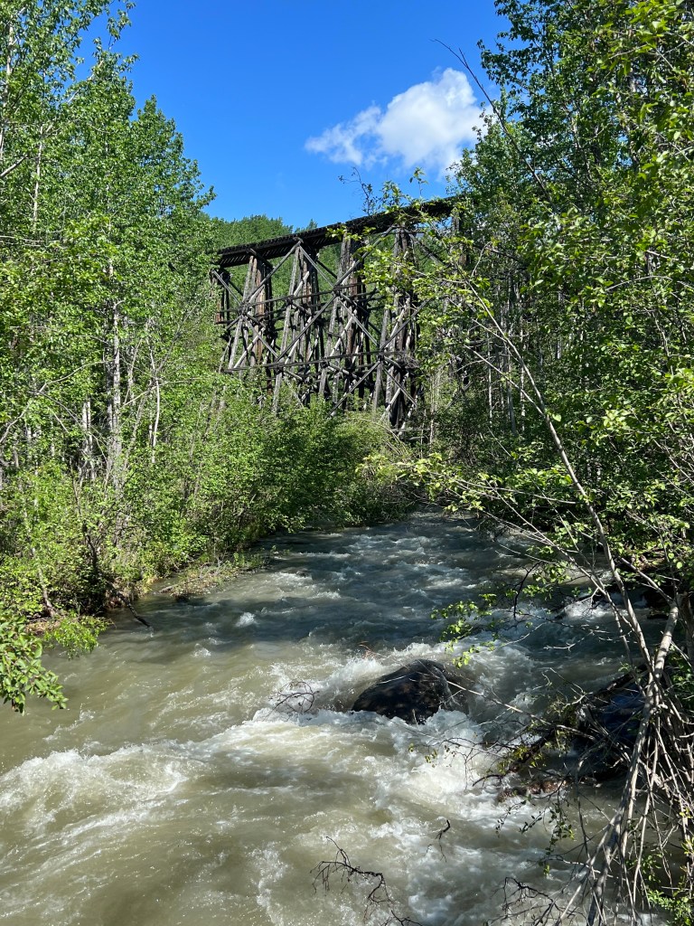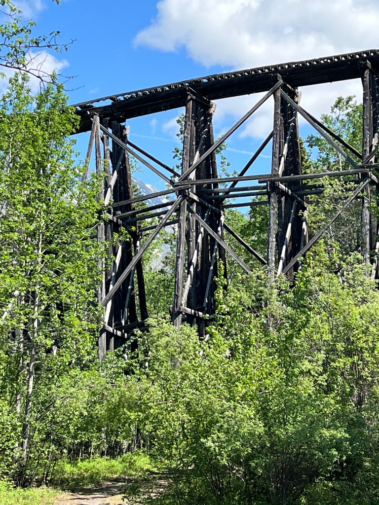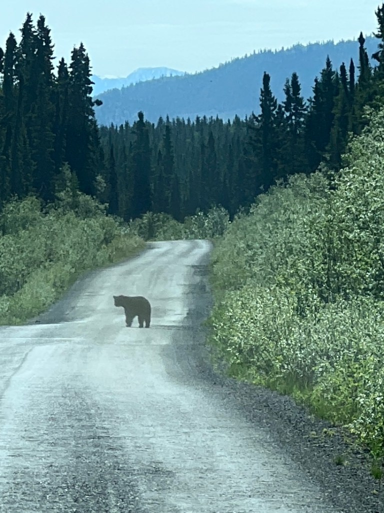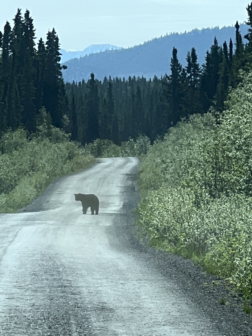 Along the way we stopped to check out the old trestle bridges and one lane creek crossings. We even had a bear cross in front of us. Just getting to McCarthy is an adventure!