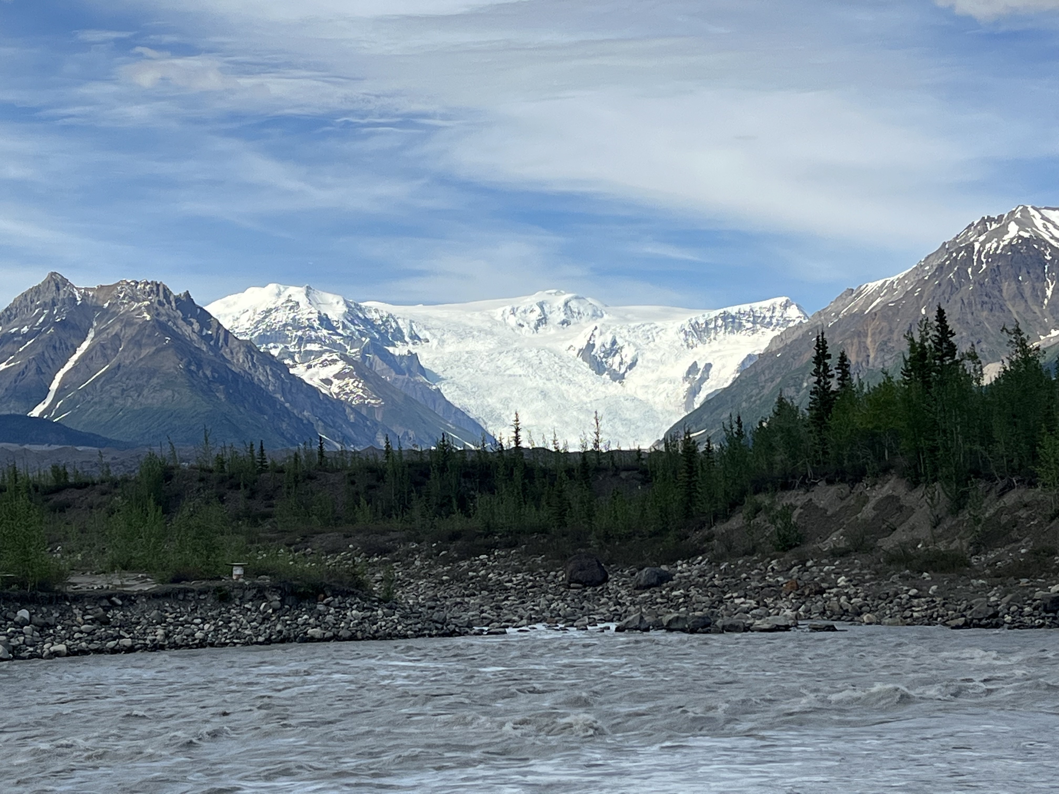 From the Nebesna Road we traveled south towards the other park entrance. Because we had some time to kill before our next reservation, we boondocked a few nights along the way in the Copper River Valley. Known for the famous Copper River salmon, the area is filled with fast running creeks, streams, and rivers, and the water levels have been high due to late snows and now warm days.