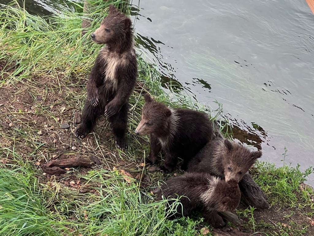 - Bear cubs stay with their mothers for 2.5 years. During the first year they are called “springs” (born in the spring) and in the second year they are called yearlings. We watched a mother nurse her two yearlings, right under the viewing platform.
