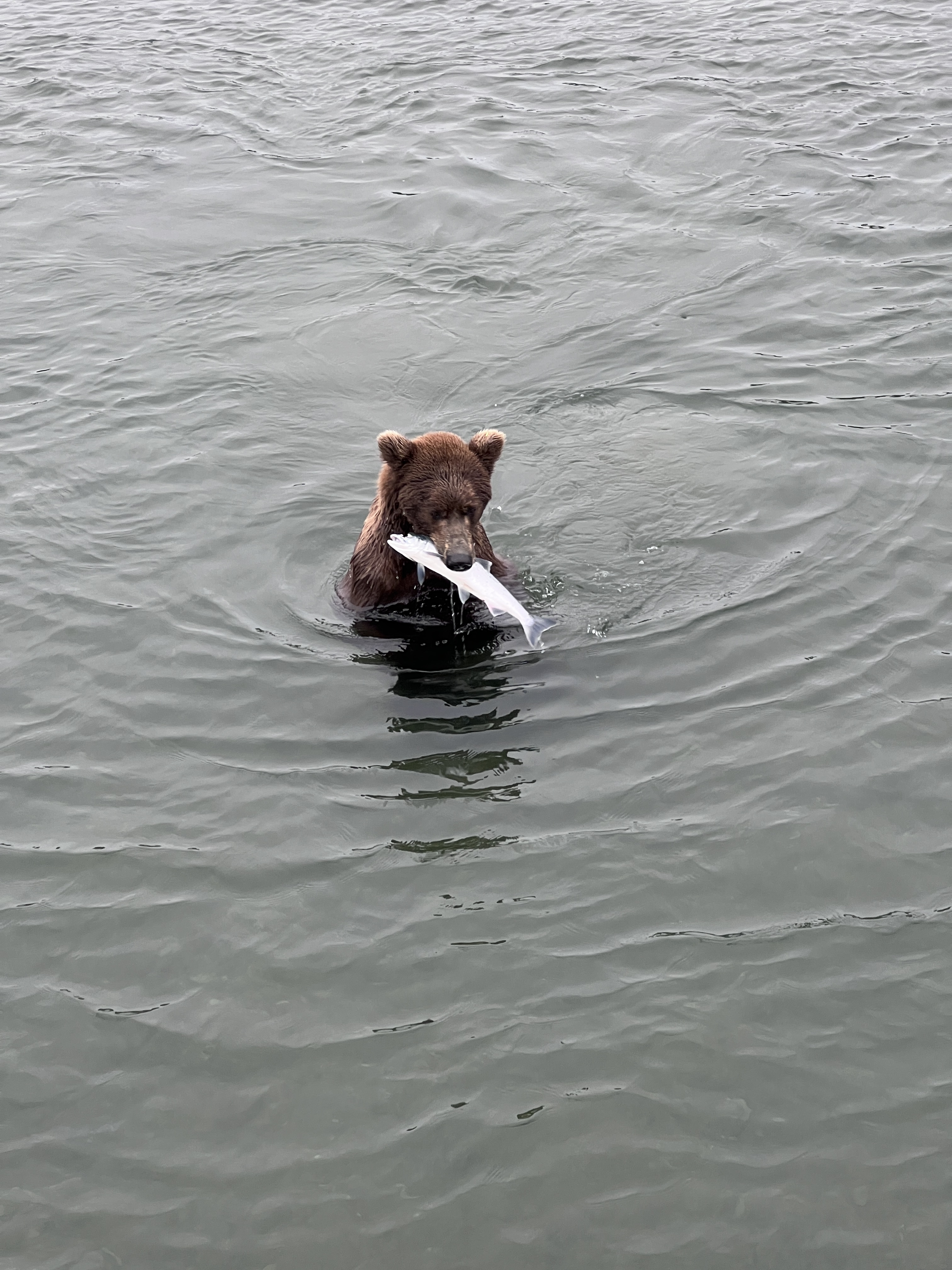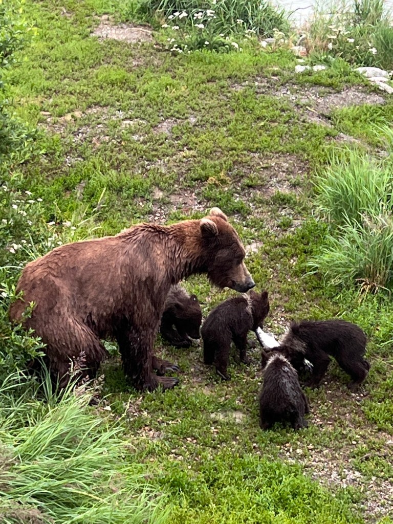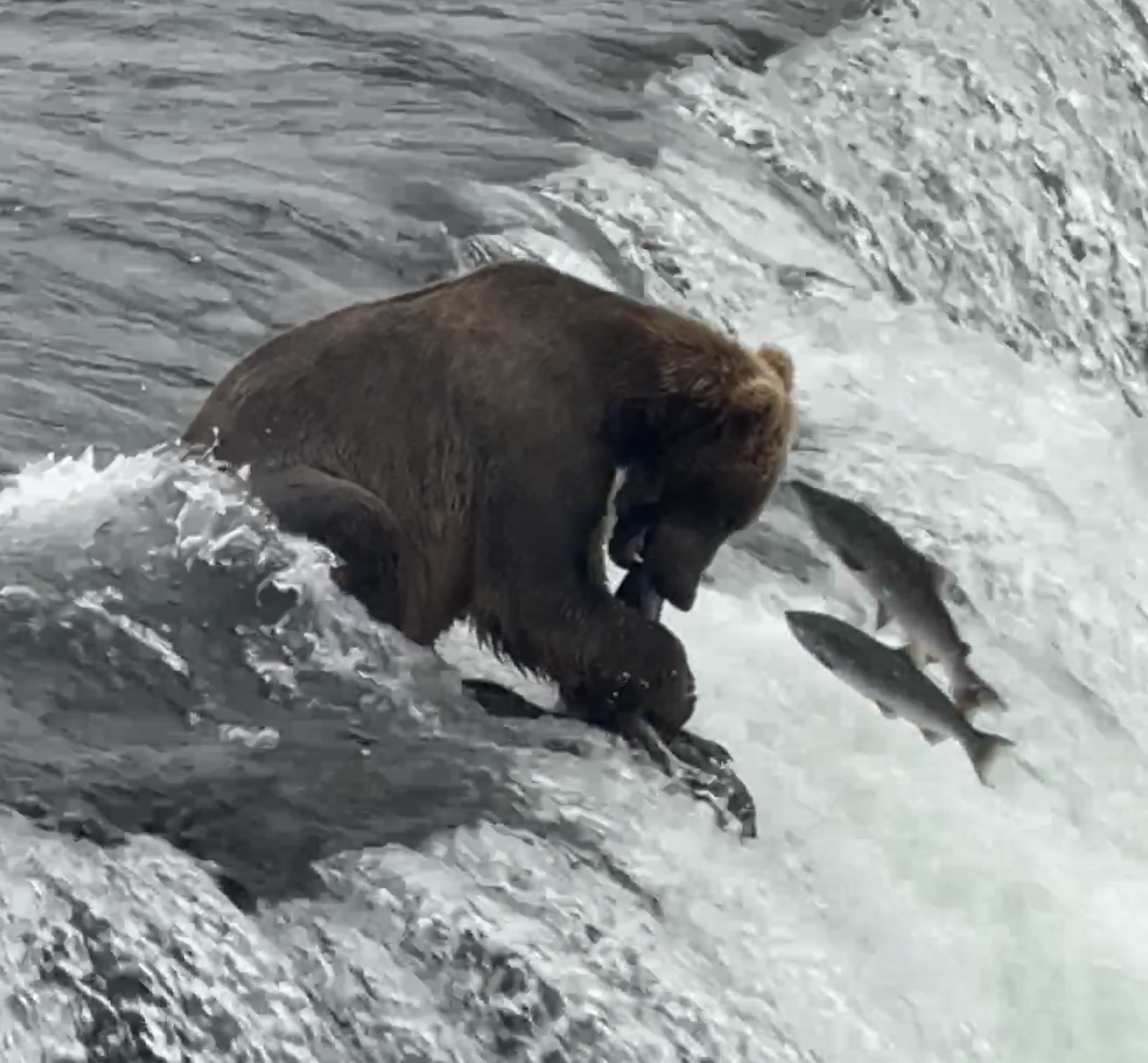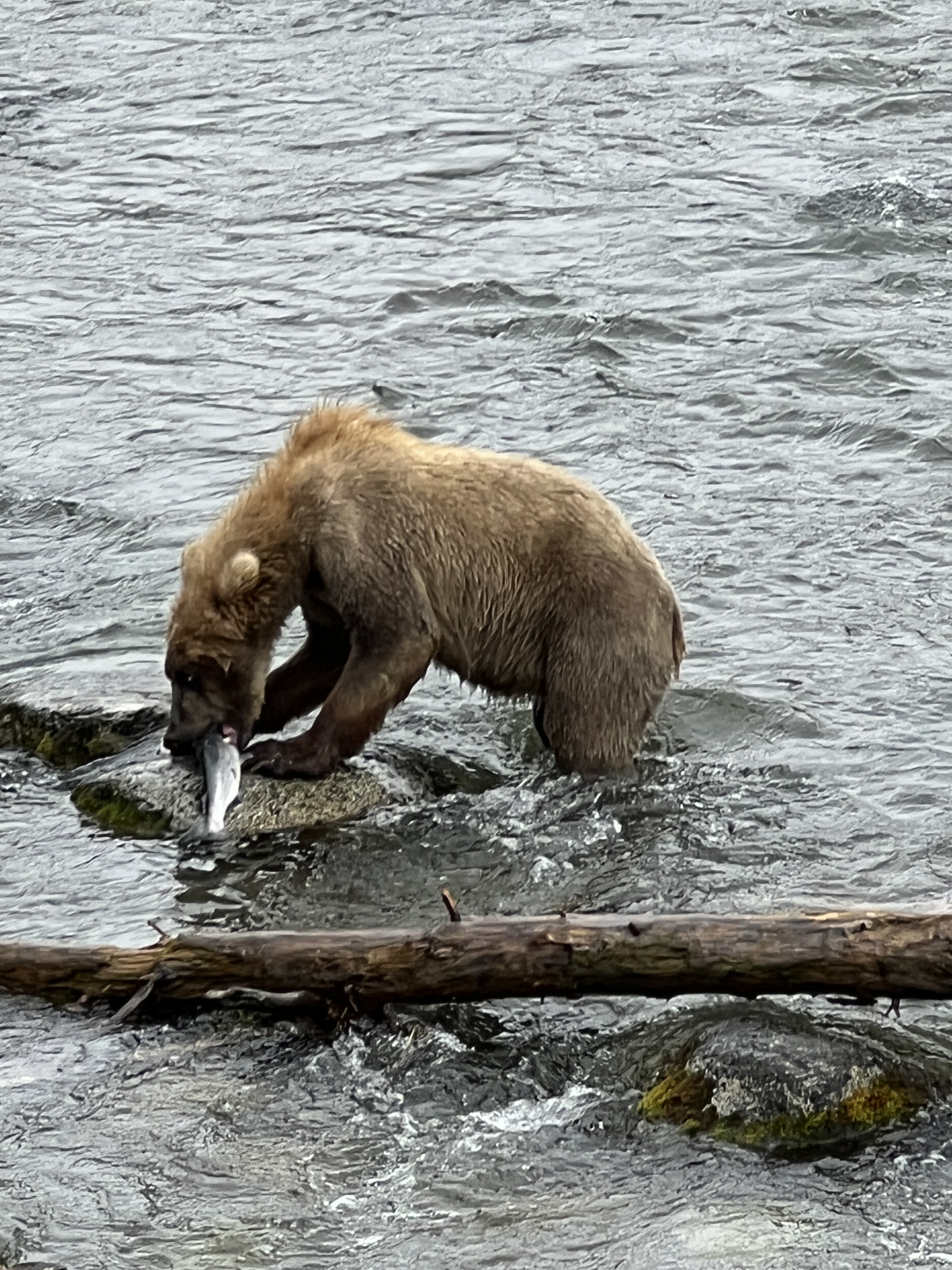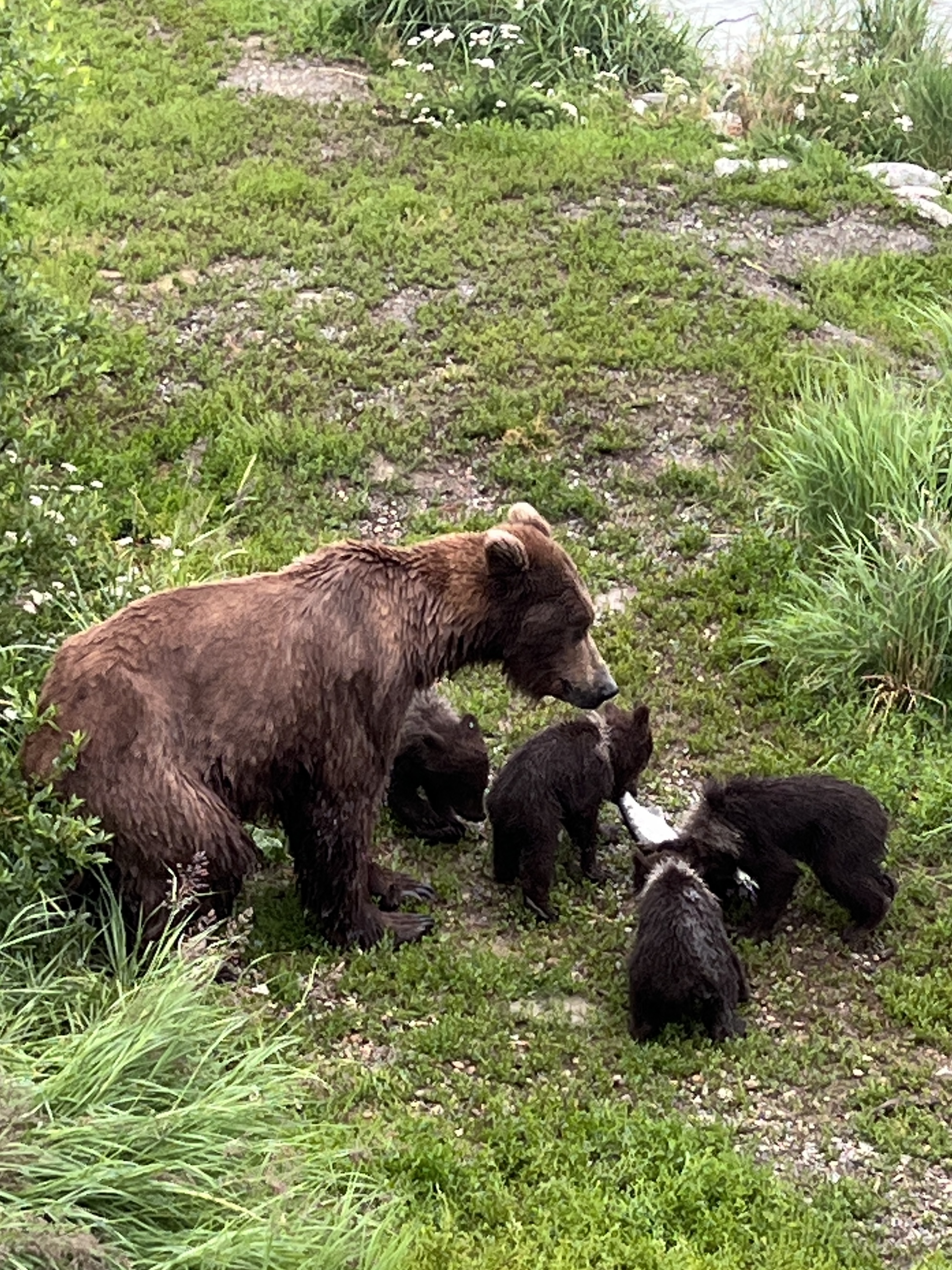 We walked about a quarter mile before we saw our first bears—mama and her FOUR cubs! We watched as the mama bear caught a fish, brought it to her cubs, and the cubs fought over it. It was nothing short of incredible.