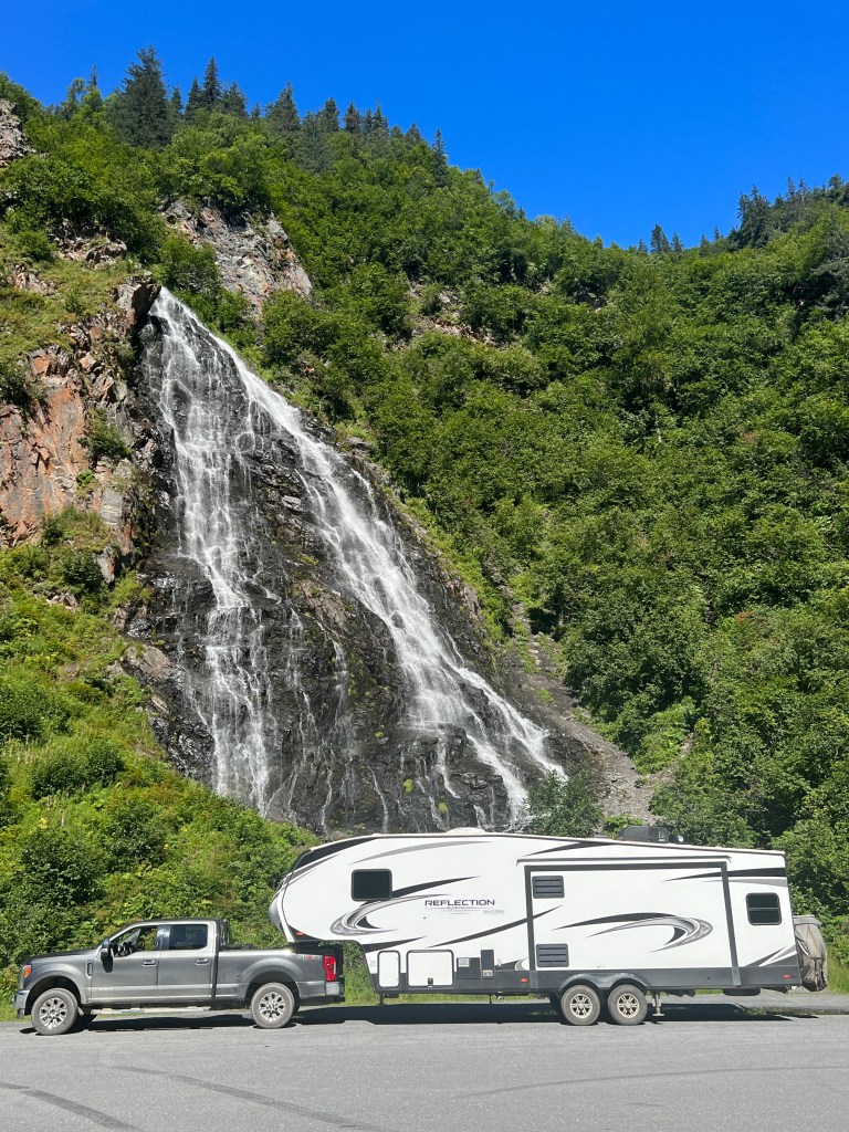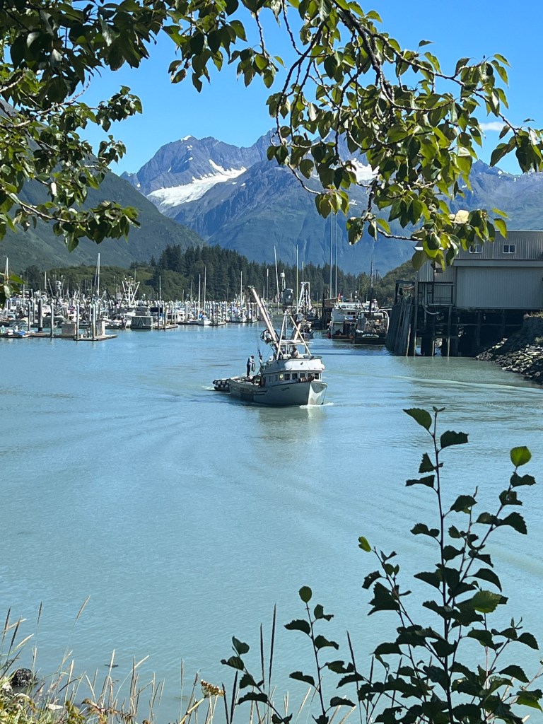 Valdez is a beautiful place. We were lucky to snag a campsite at the Bear Paw II RV Park, right alongside the boat harbor. We spent hours just watching boats of all sizes come in and out of the port. Surrounded by at least five glaciers, the port area is where the action is at in Valdez.