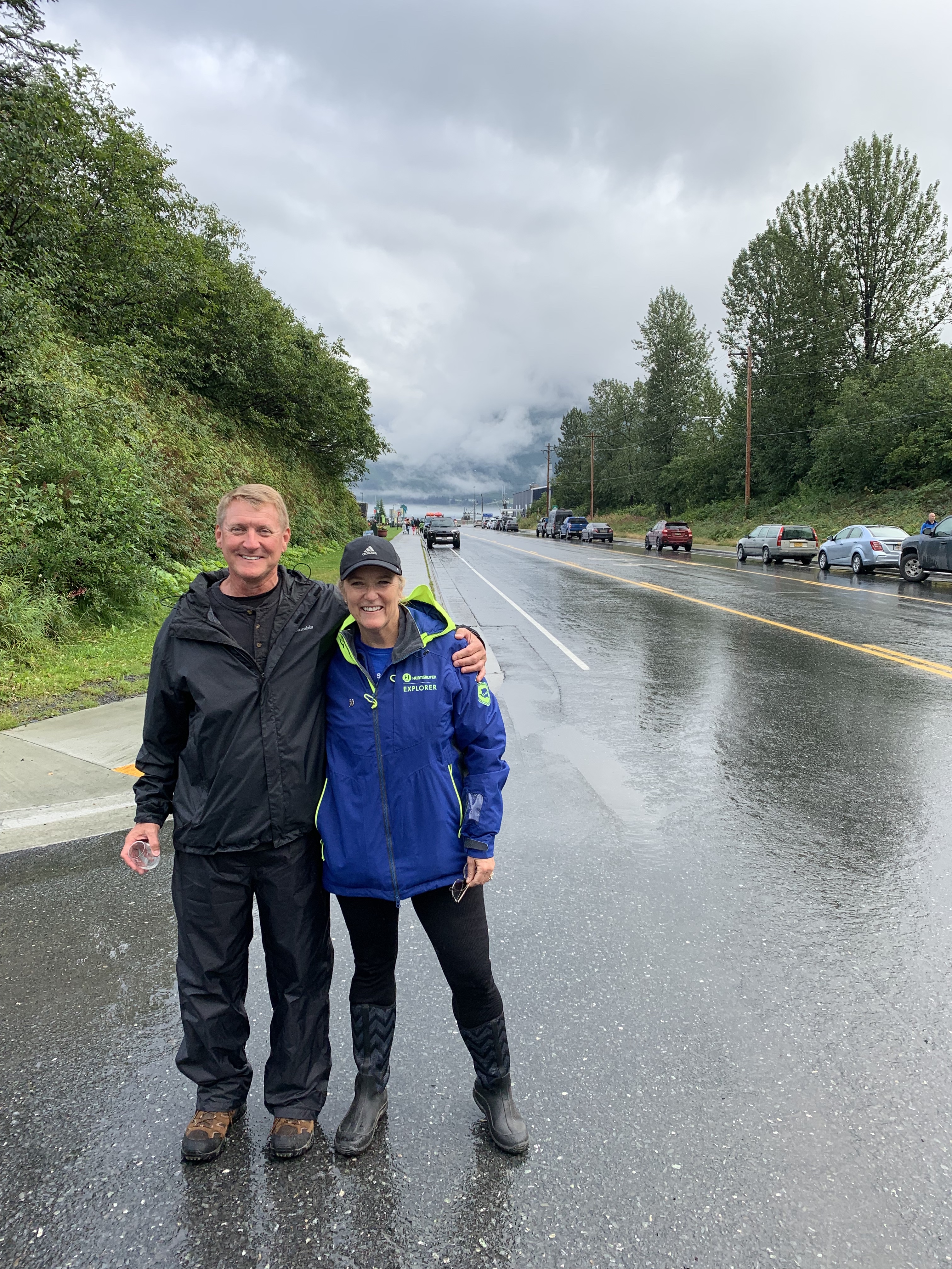 After the successful fishing venture, the skies turned dark and the town was socked in with clouds for the remainder of our stay. They say it rains a lot in Valdez, and they aren’t kidding. But it wasn’t too cold and we were prepared, so the weather didn’t slow us down much. We unknowingly timed our visit to Valdez to coincide with the annual Gold Rush Days, a four day celebration of Valdez’s history. As part of the celebration, we participated in the Wine (and more) Walk through town, which gave us an opportunity to mingle with the locals, support local charities, and sample Valdez-brewed beer. Even in the rain it was fun!