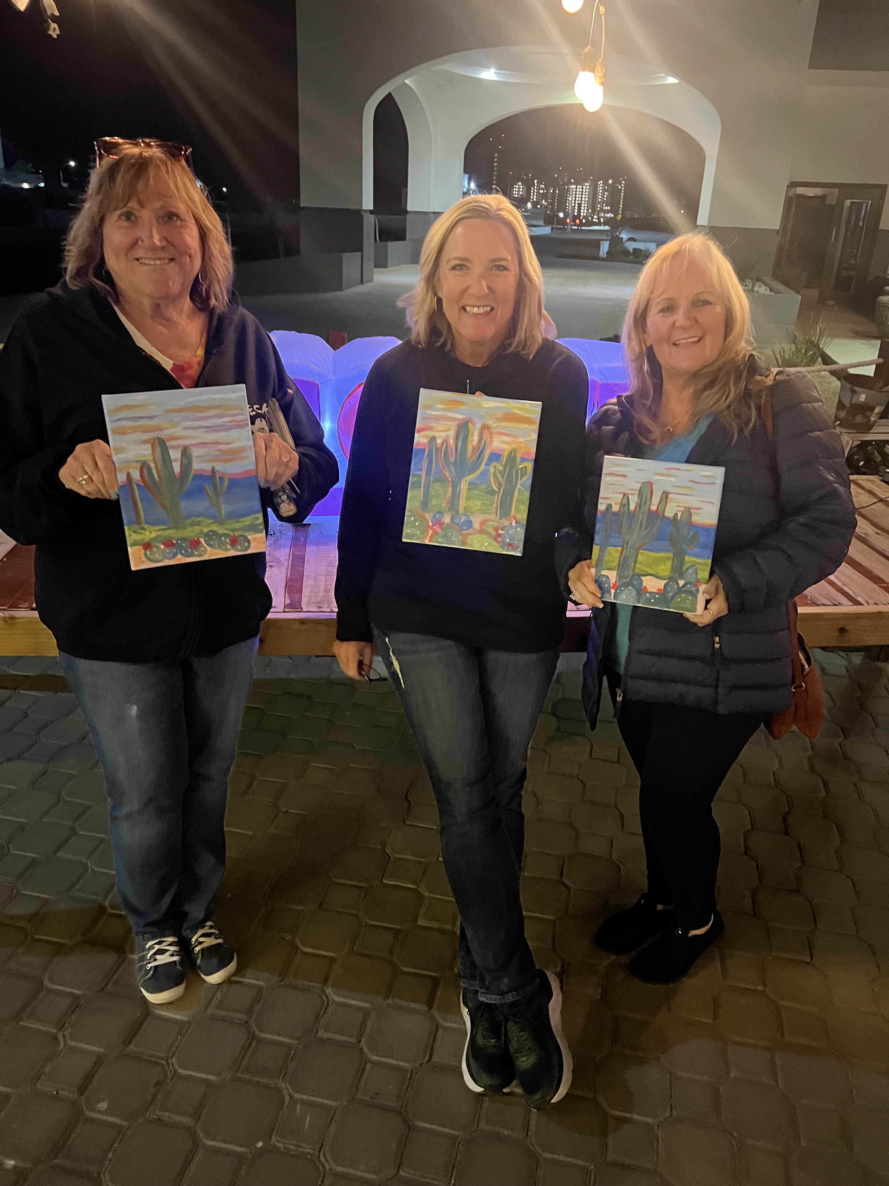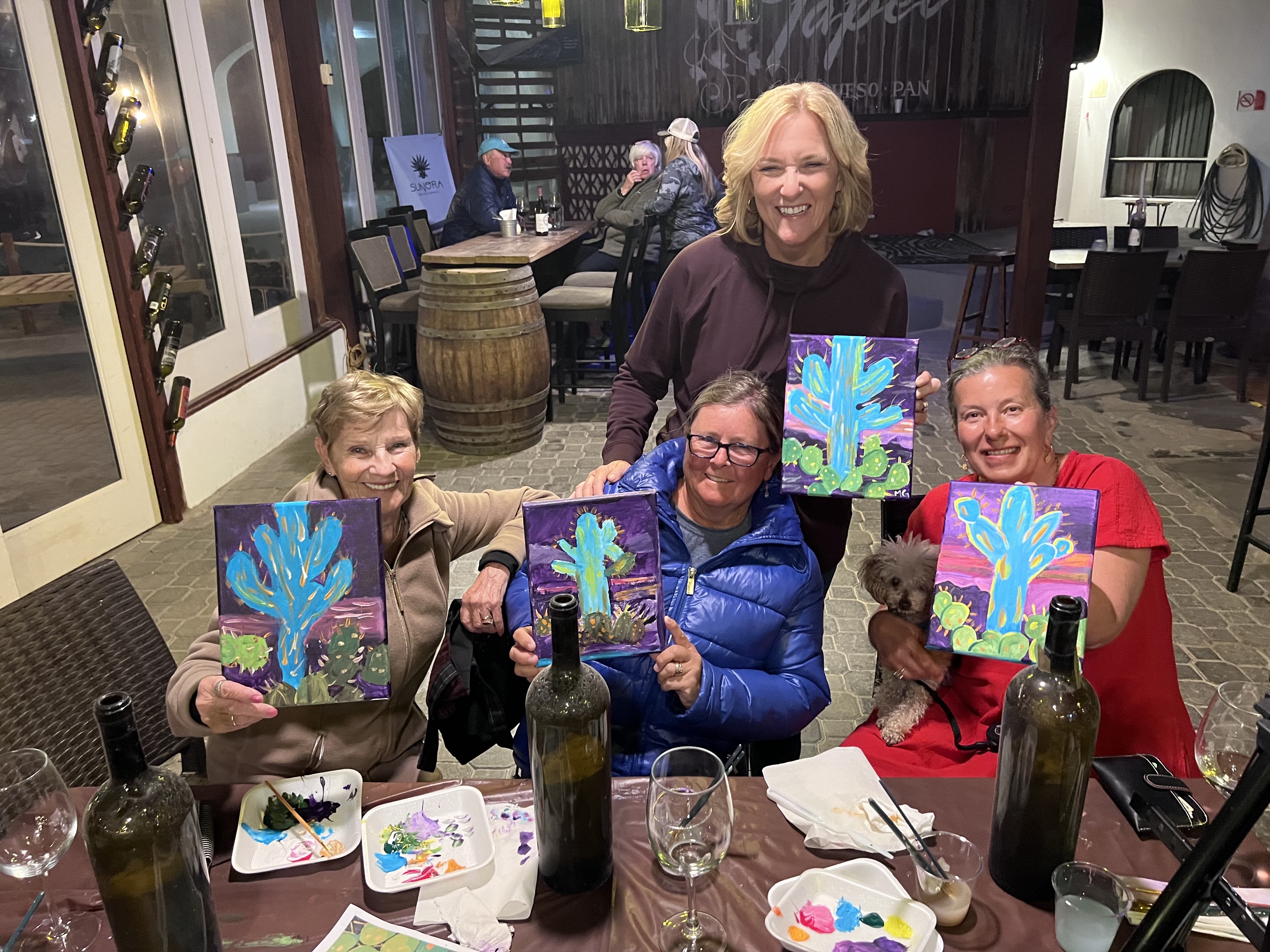 In between visitors, we enjoyed time with new friends we met at the RV park, including one more session of Sip and Paint. Even Bob got in on some action that night!