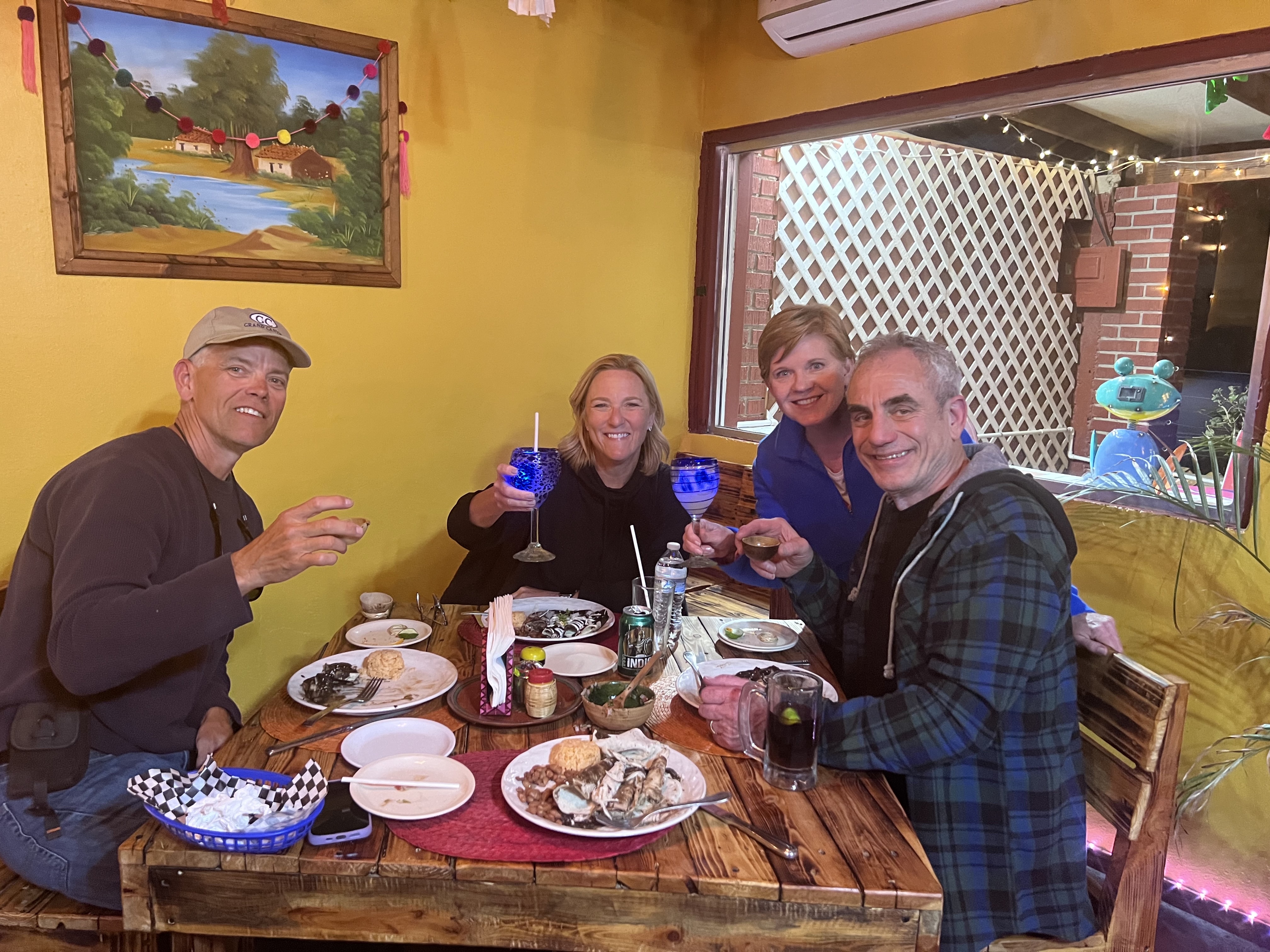 February was punctuated by visits from dear friends. First we had a great weekend with Michelle and Owen May. The four of us have spent a lot of time together in Puerto Peñasco over the years, so we searched for new experiences this time, in honor of Owen’s birthday. We hit at least four new restaurants, Jessy’s, Grapes & Barley, La Negrita, and Ole Mole.
