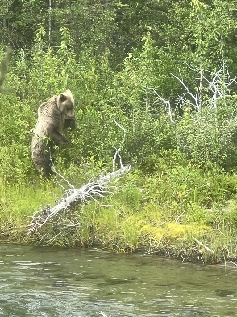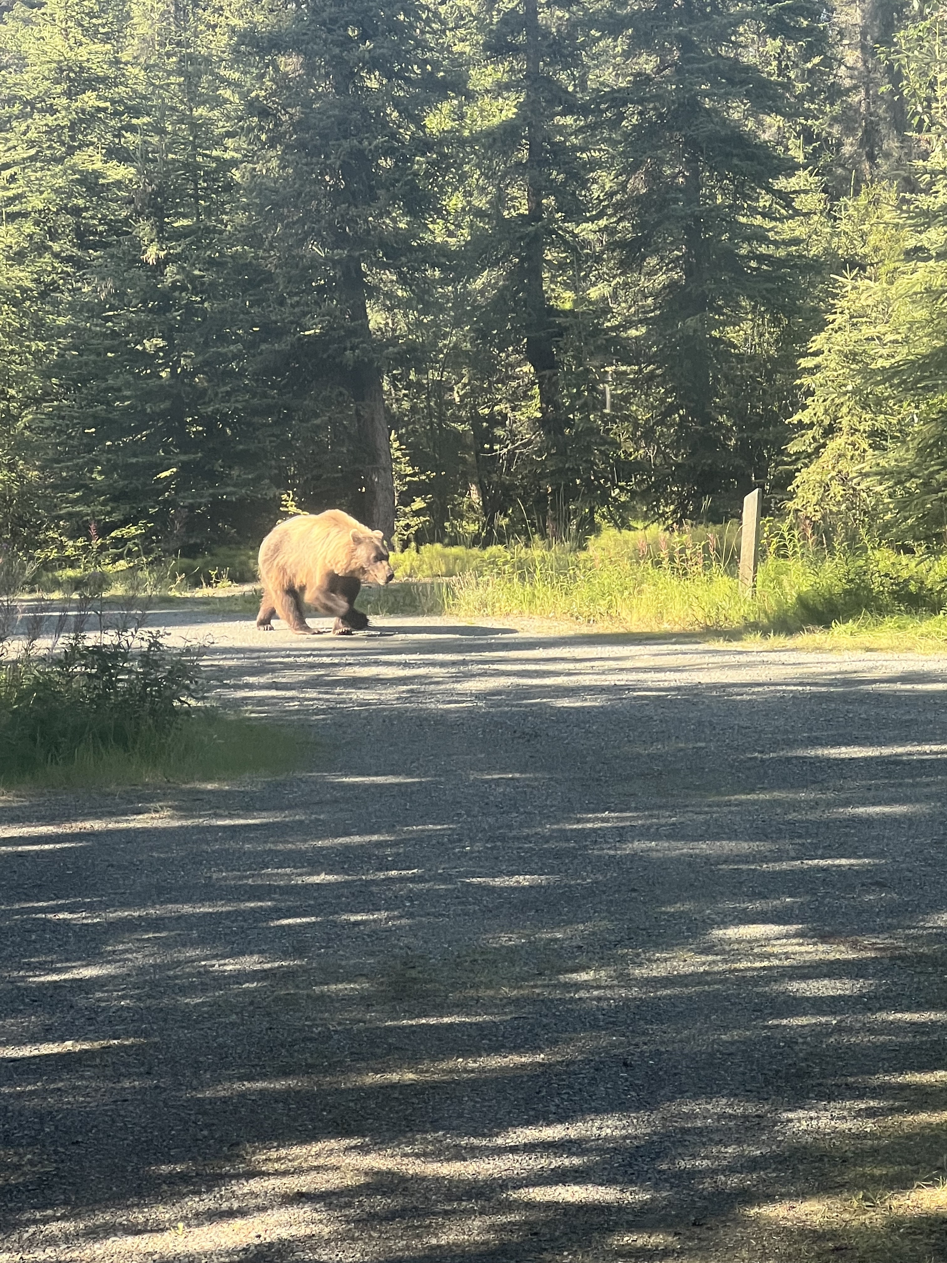 Walking through the park and seeing bears just off the trail was a little unnerving at first and then just awe-inspiring. For me, this was one of the biggest highlights of our summer. Steve, however, saw bears numerous times while out running (in Jasper and in the Yukon). One large grizzly even followed him back to the camper, which allowed me to see the big guy from our back window.