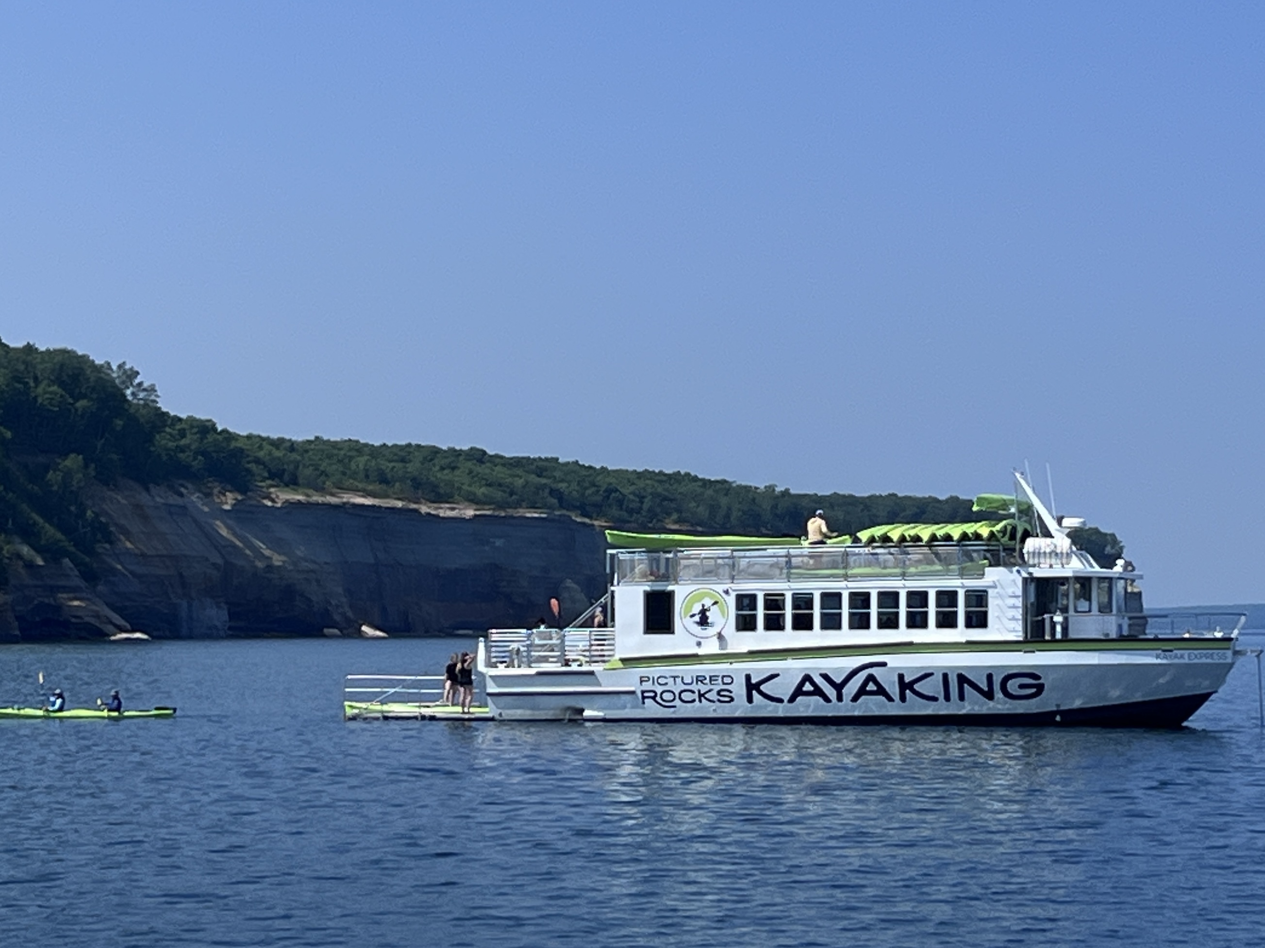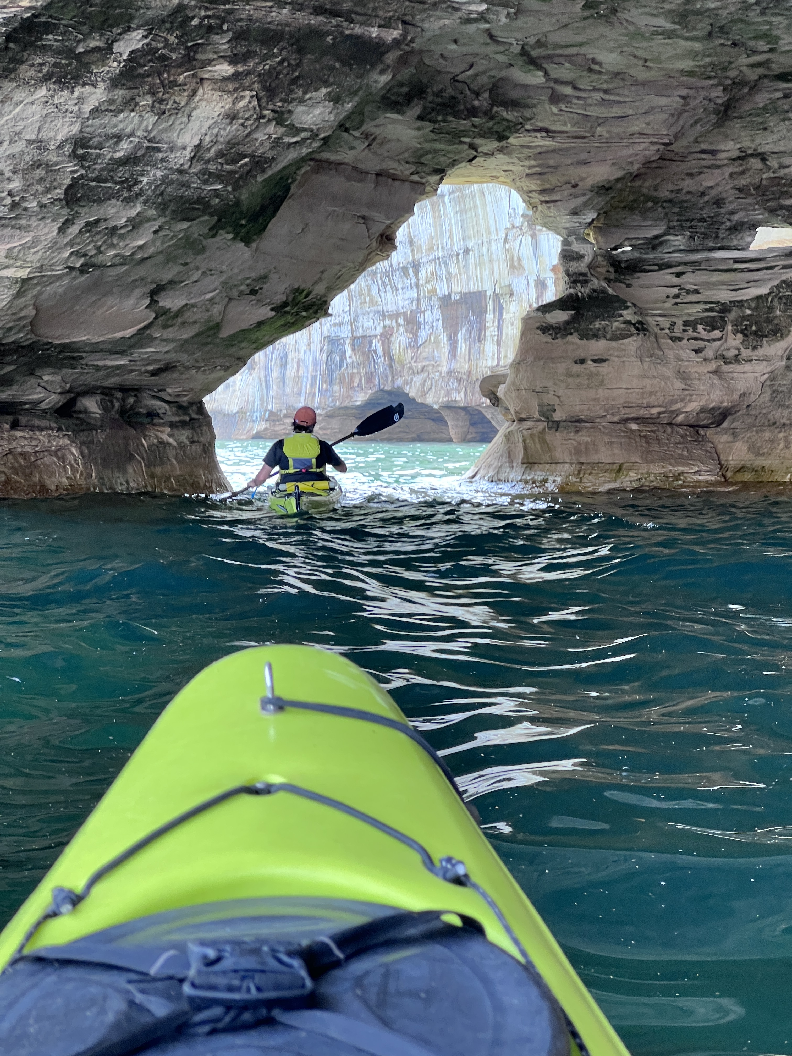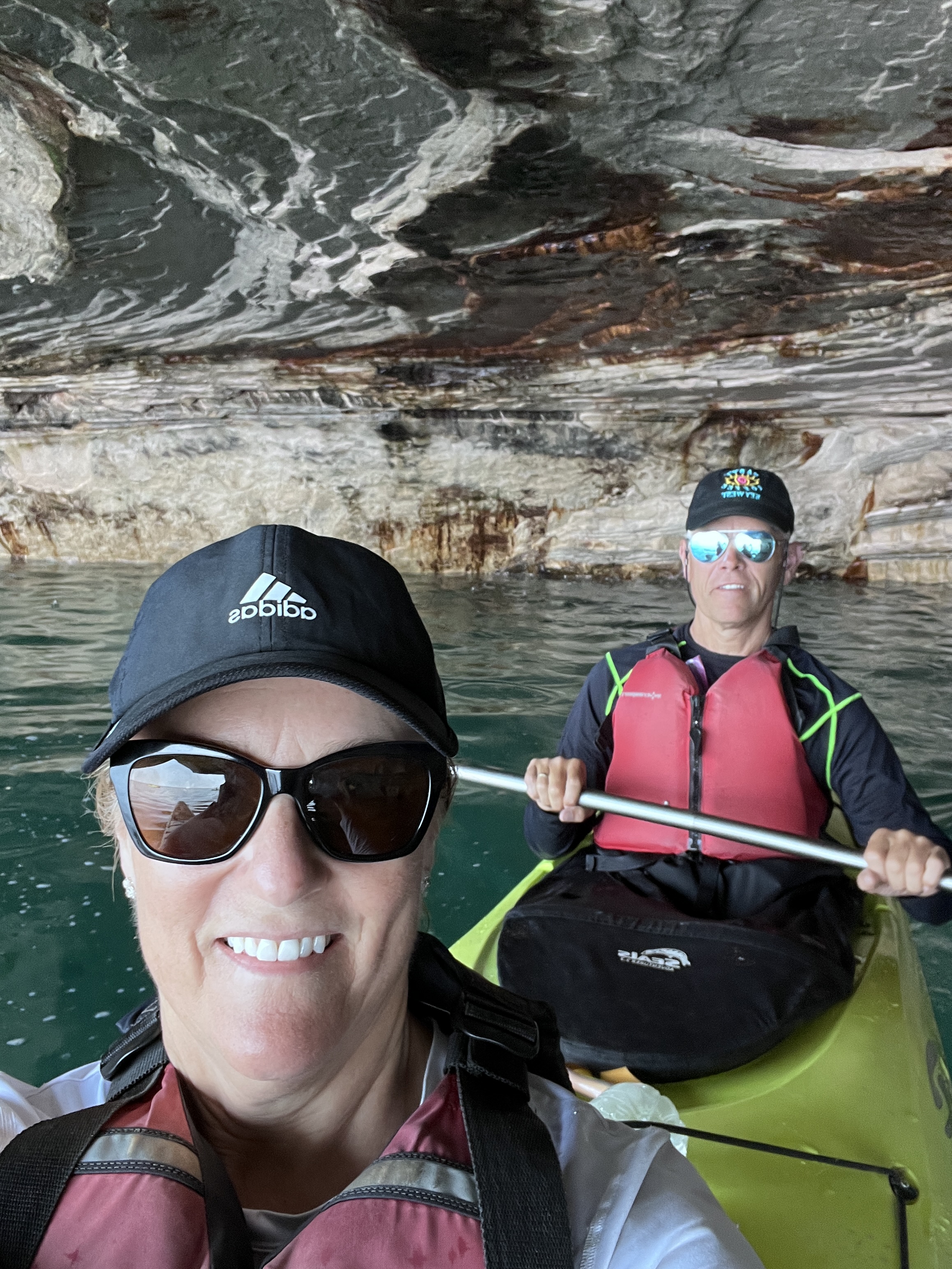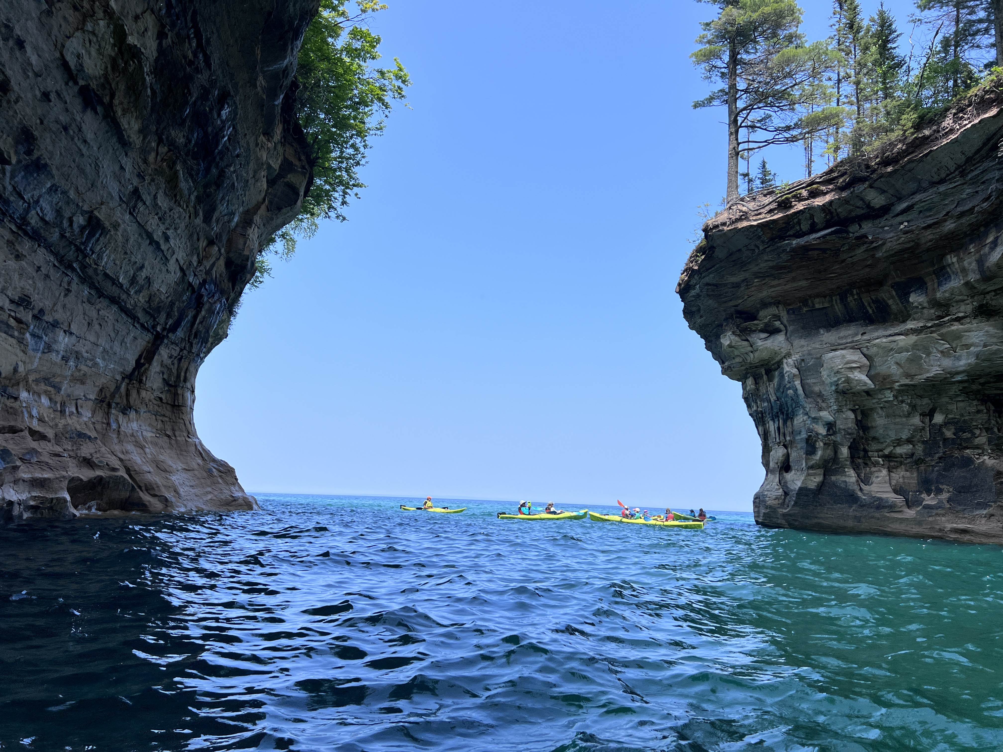 The best way to really see Pictured Rocks is from the water. You can take a tour boat or kayak up to the cliffs and into the caves. Which one do you think we chose?