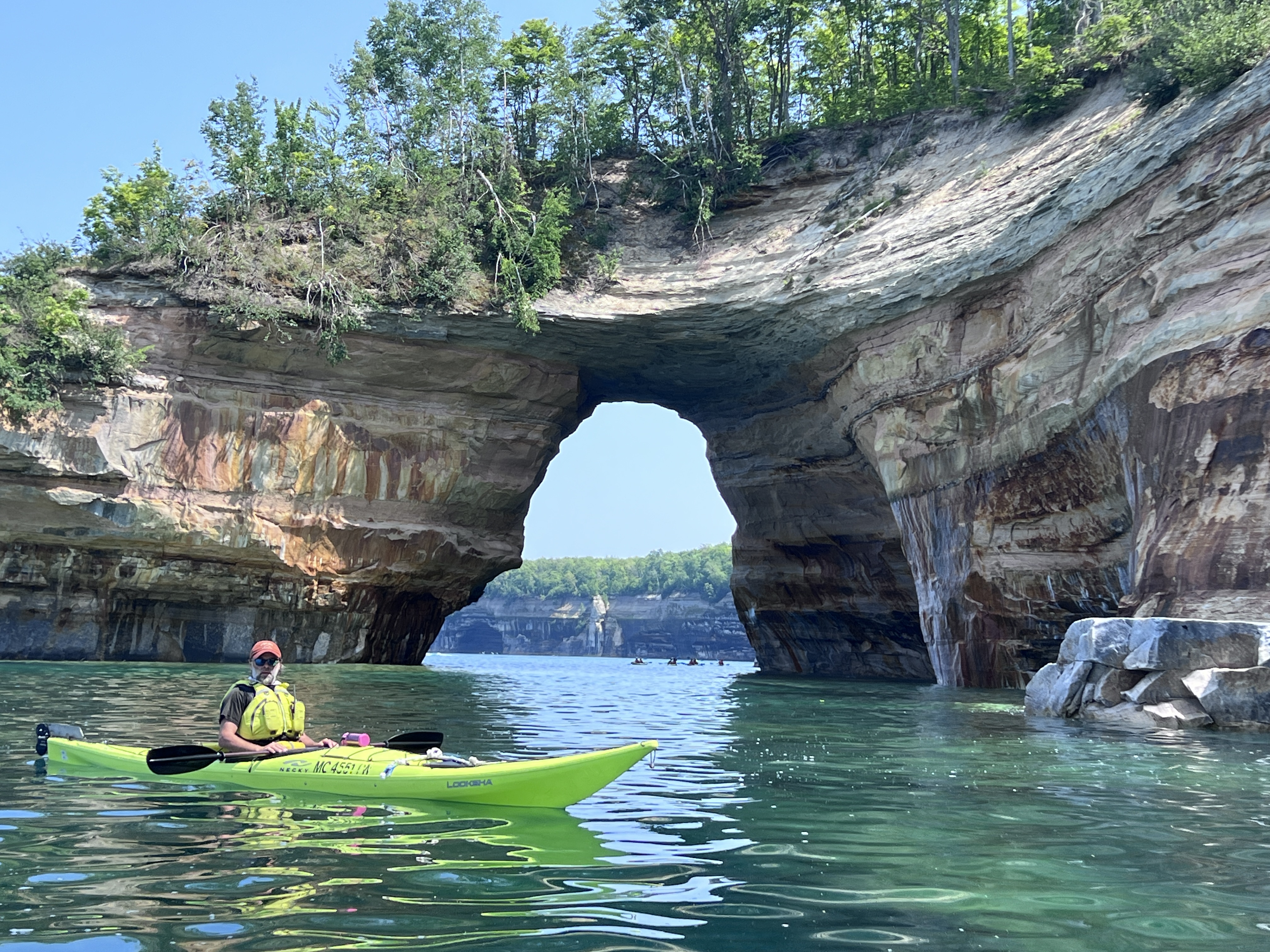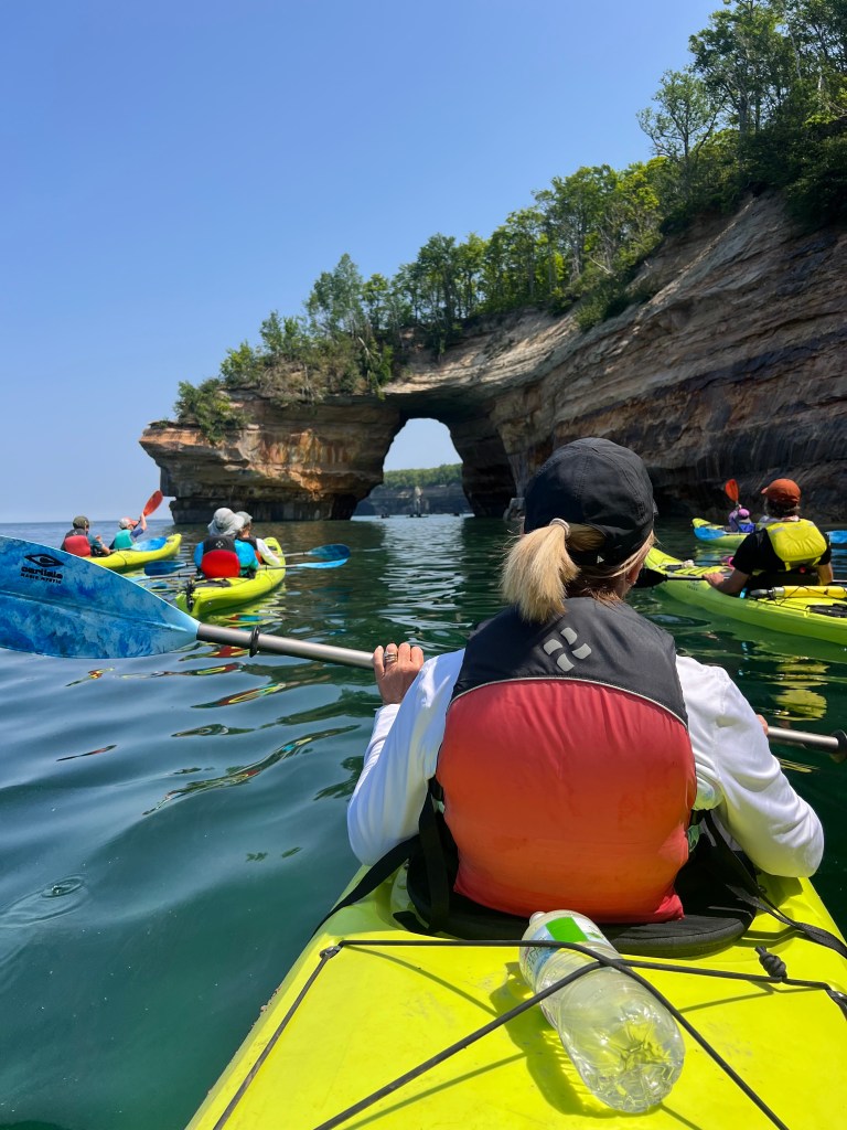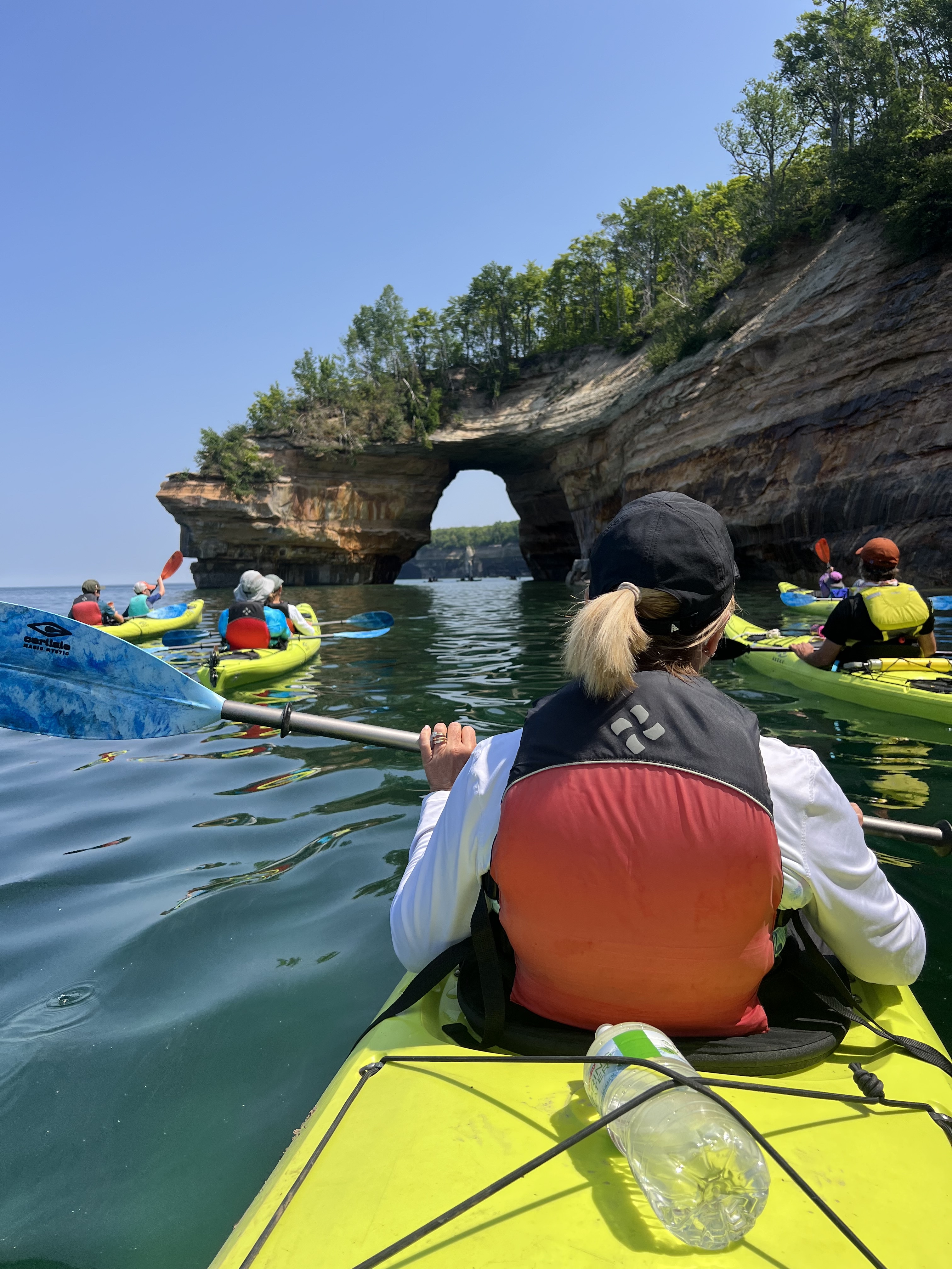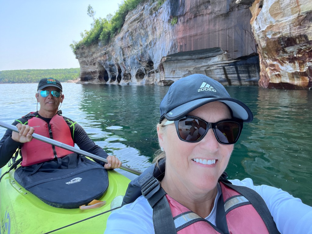 The best way to really see Pictured Rocks is from the water. You can take a tour boat or kayak up to the cliffs and into the caves. Which one do you think we chose?