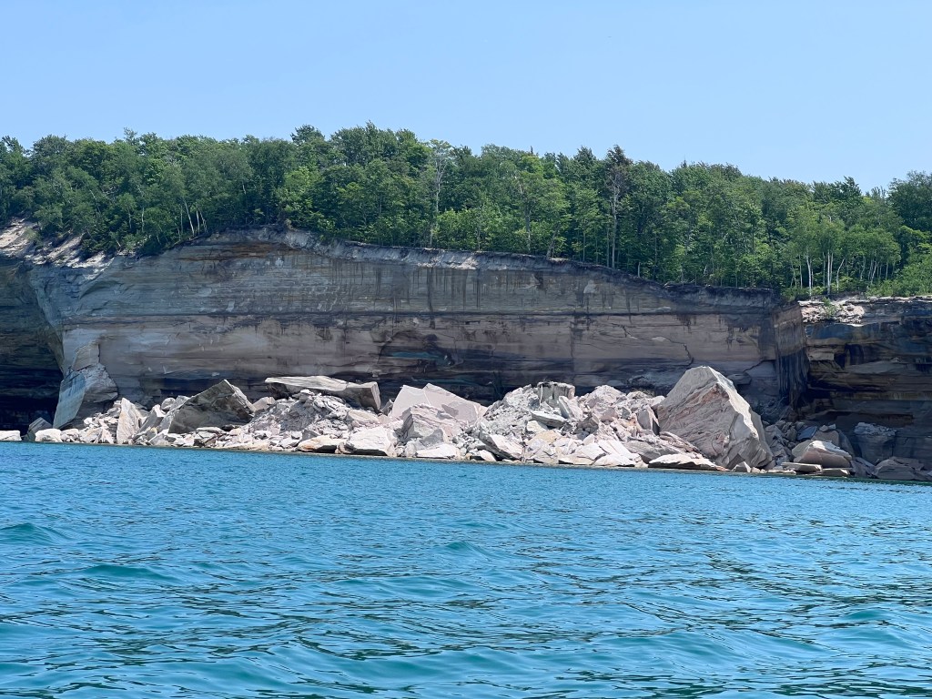 And yes, the cliffs continue to break off and change all the time. This was displayed in one area where large rocks had sheered off the cliffs over the winter and had been moved back against the mainland by ice during a winter storm. We were told to paddle clear of this area to be safe.