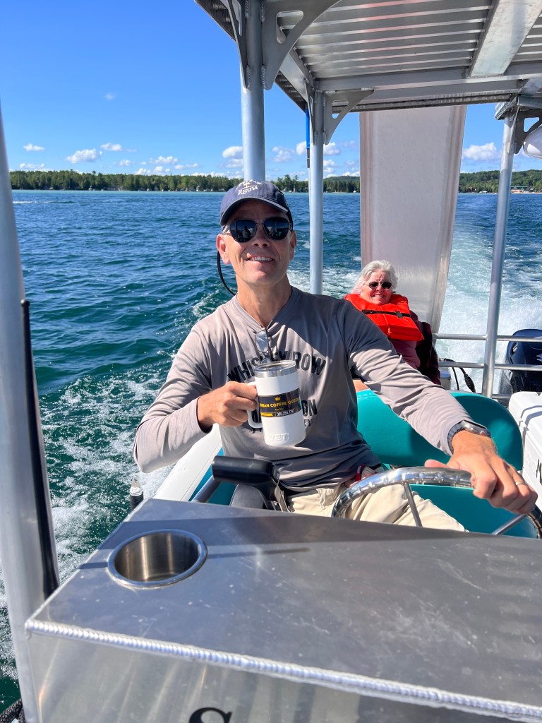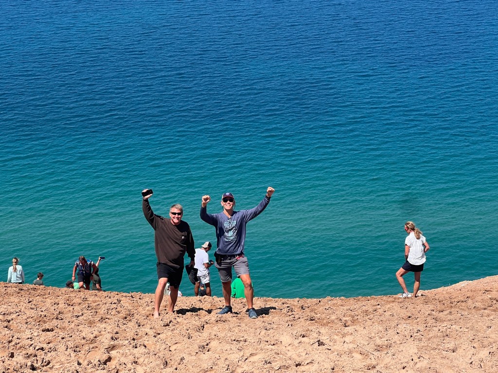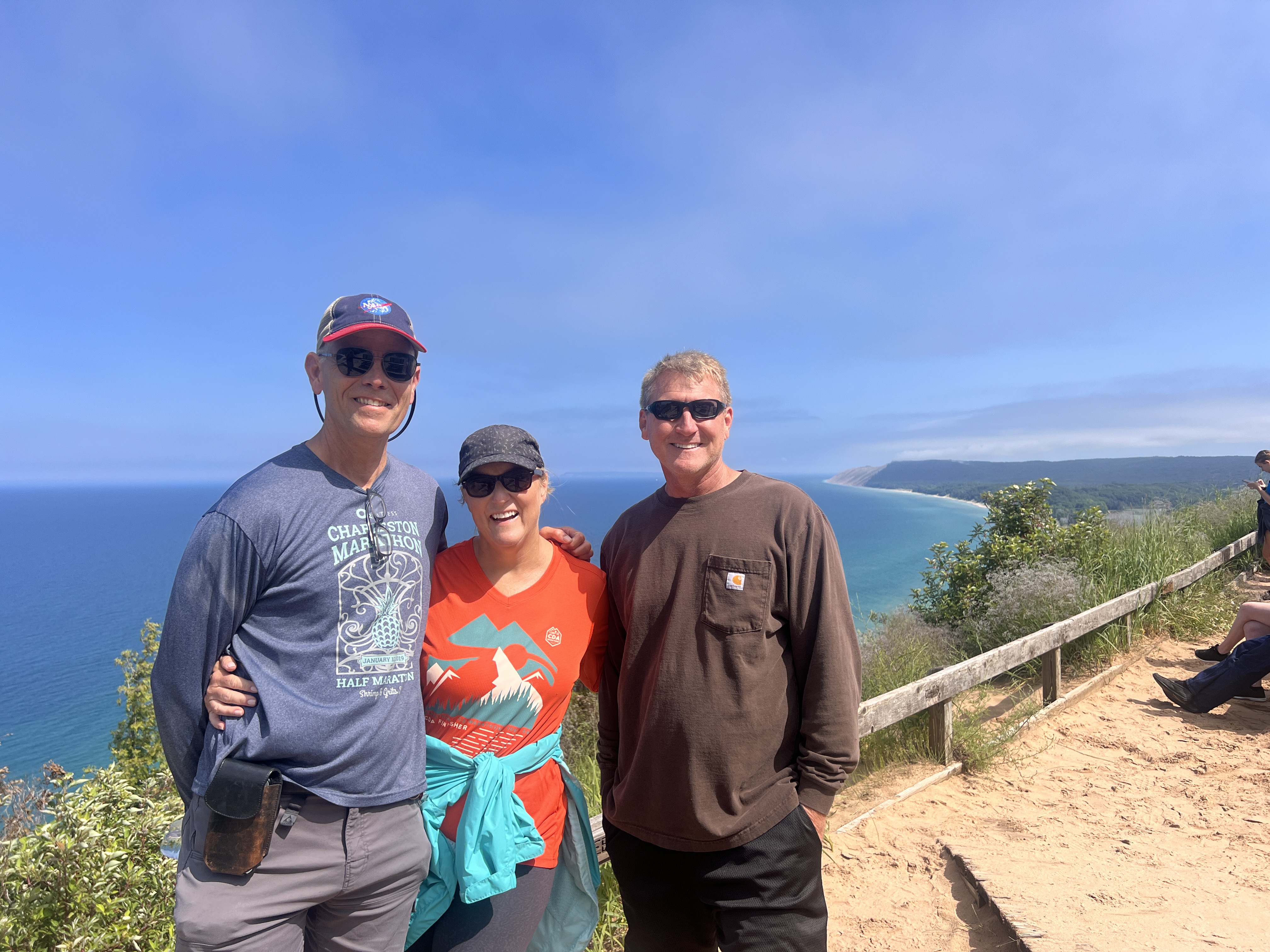 The day after Brian’s crew left, we welcomed my cousin Mitch to Traverse City. He left 115 degree temperatures in Phoenix and seemed happy to be here in our 75 degree weather. Even the occasional rain shower didn’t seem to dampen his spirit! In our week with Mitch we visited wineries, hiked in Sleeping Bear Dunes, walked through the Cherry Festival, and checked out numerous local breweries and distilleries. Steve and Mitch also participated in the Cherry Scramble Golf Event as part of the Festival.