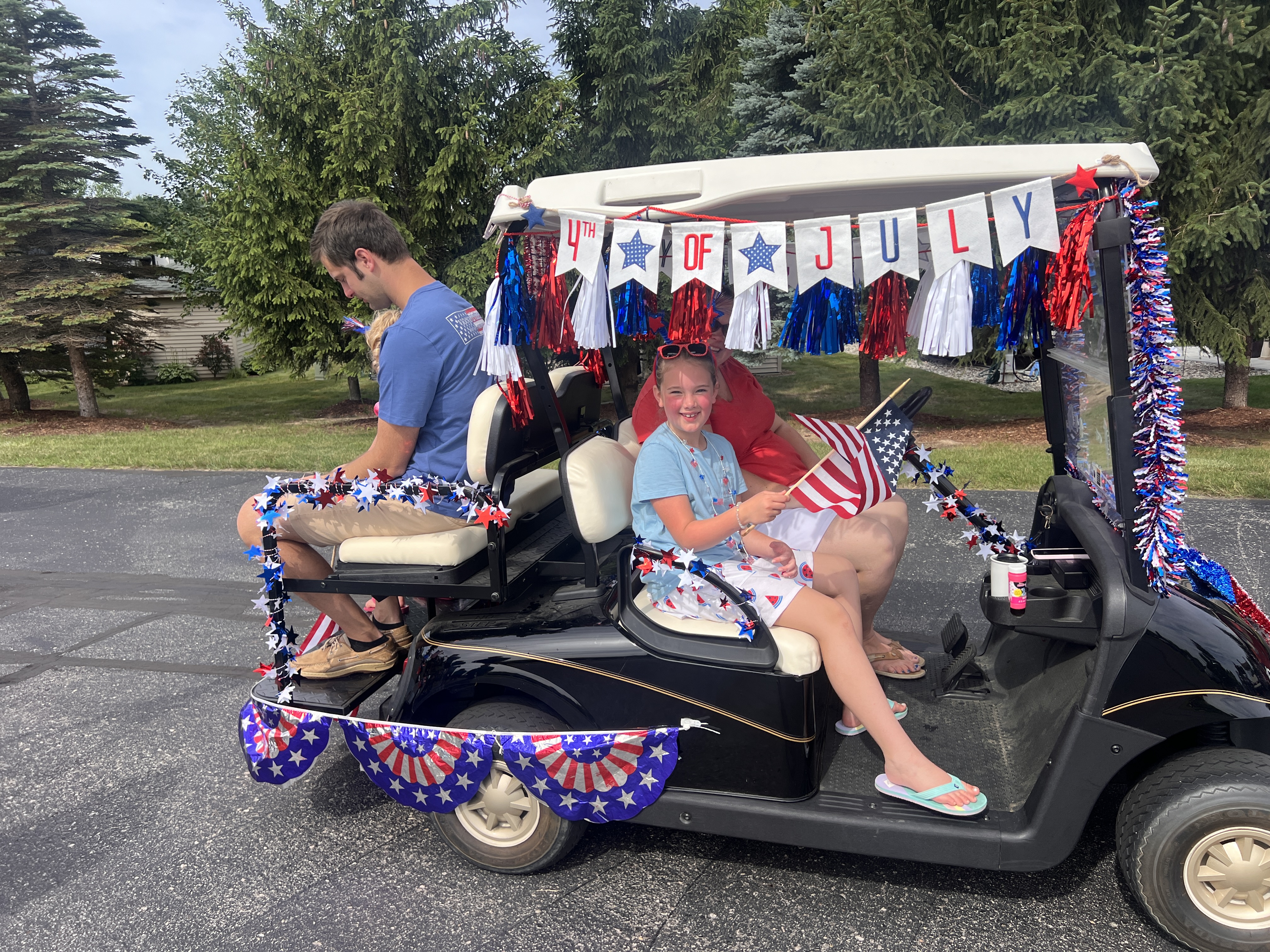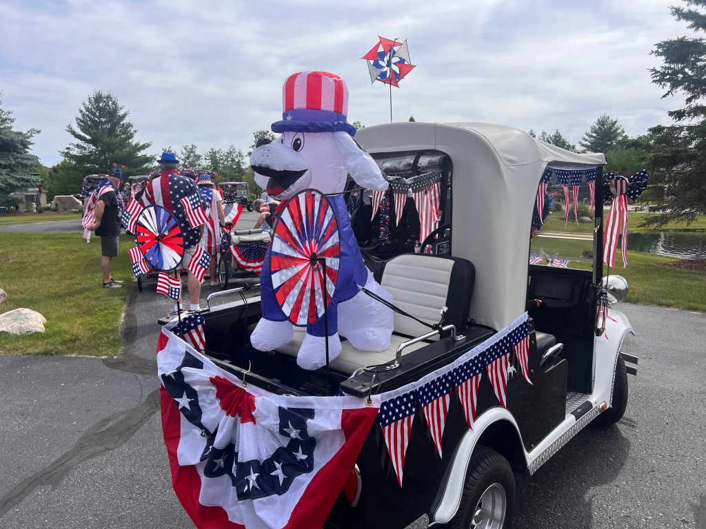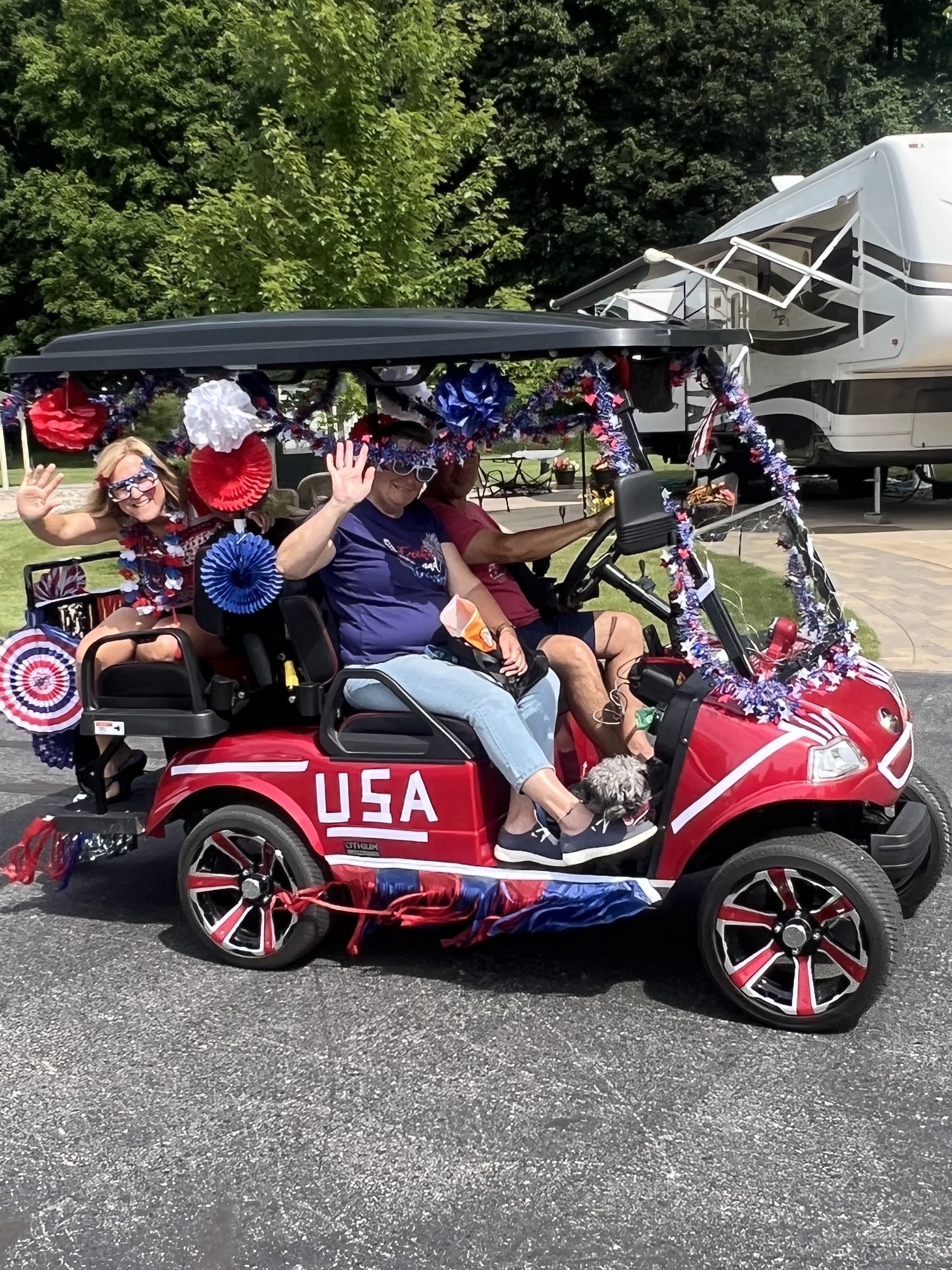 Mitch’s visit coincided with Independence Day, so he was able to join us in the resort’s activities. Our day began with a parade in which I had the honor of riding in Kunio and Michelle’s cart. Even Bob sat out to watch the parade of over a dozen spectacularly decorated vehicles pass by.