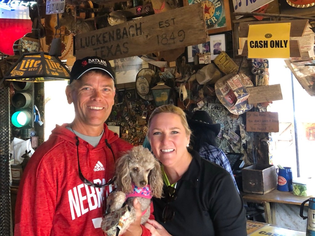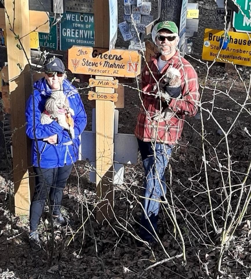 Hiking Bryce CanyonAtop a peak somewhereMaking her own way Relaxing on a catamaran in Key West with Nancy and TomWatching the trains in CheyenneColorado brewery/Dog parkAnother brewery with DadCelebrating the marathon finishAt the bar in Luckenbach TXHanging her sign at the signpost forest, Watson Lake, Yukon Territory
