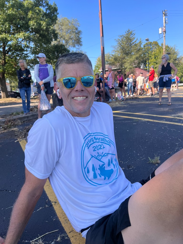 I took a free shuttle to see Steve at the 15 mile mark and by then the temperature was in the high 80s. The race had issued a red alert, indicating dangerous running conditions. Steve’s heart rate, normally around 130 beats per minute when he runs, was pushing 160. This, along with the prospect of even higher temperatures at the finish line, was enough for Steve to call it a day. Better to be safe than sorry. So, we’ll be back through Ohio next year to do another marathon so he can claim the state.