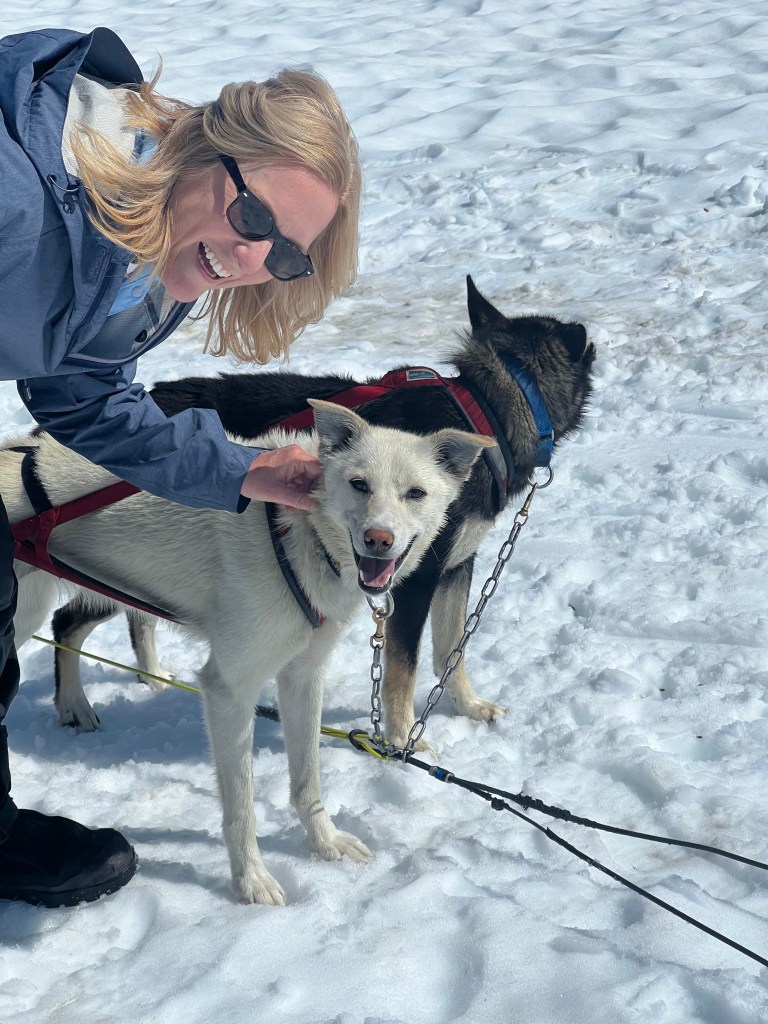 Once our team of eight dogs were hooked up to the sled, we were off! The dogs were smaller than we expected at about 40-50 pounds each. It was incredible how much power these small but mighty animals could generate. We traveled at about eight miles per hour, which is about how fast the racers go as well.
