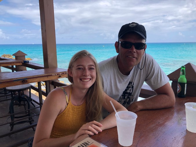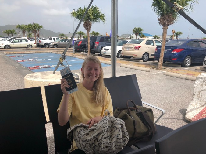 Lauren is on her way home now. Here’s a photo of her in the waiting area at the St. Martin airport. Yes, she’s outside. Hurricane Irma did a number on the old airport, so the facilities are improvised.