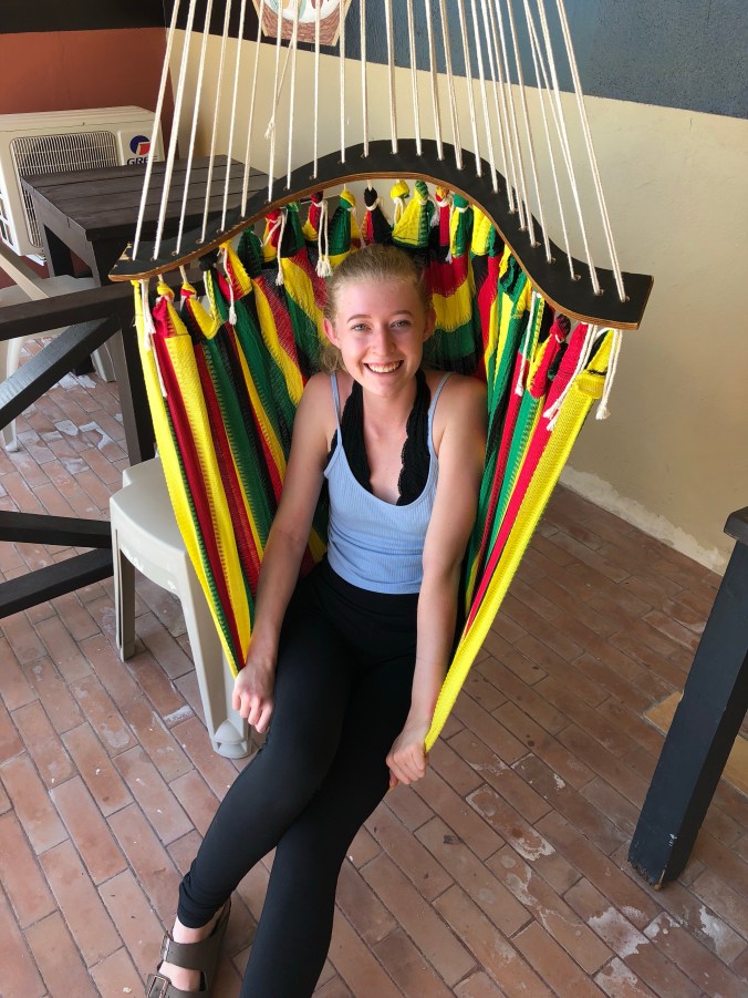 Our ocean facing room, with a comfy rasta-striped hammock chair on the deck made for a great place to ease into island life.