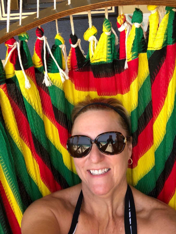 Our ocean facing room, with a comfy rasta-striped hammock chair on the deck made for a great place to ease into island life.