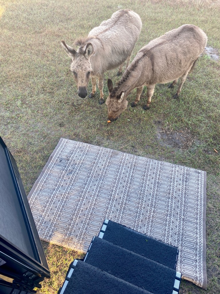 The first photo in this post is from our stop at Palo Duro Canyon, where we stopped on our way home. Here’s roughly the same photo from the next morning. We experienced ash and smoke in Amarillo two days ago from the massive Texas fires. Now it’s snowing just 30 miles south of Amarillo. RV travel never ceases to surprie!