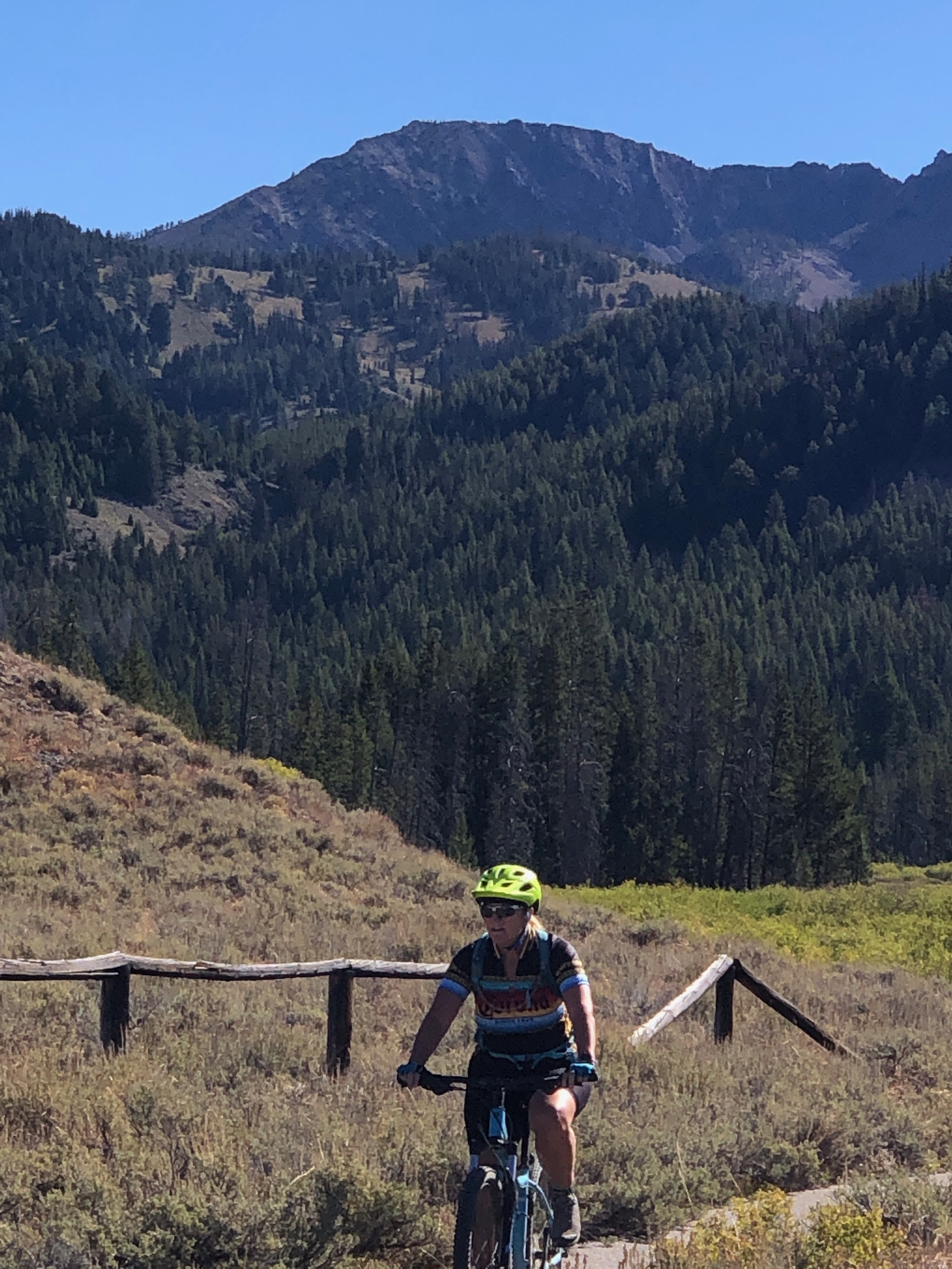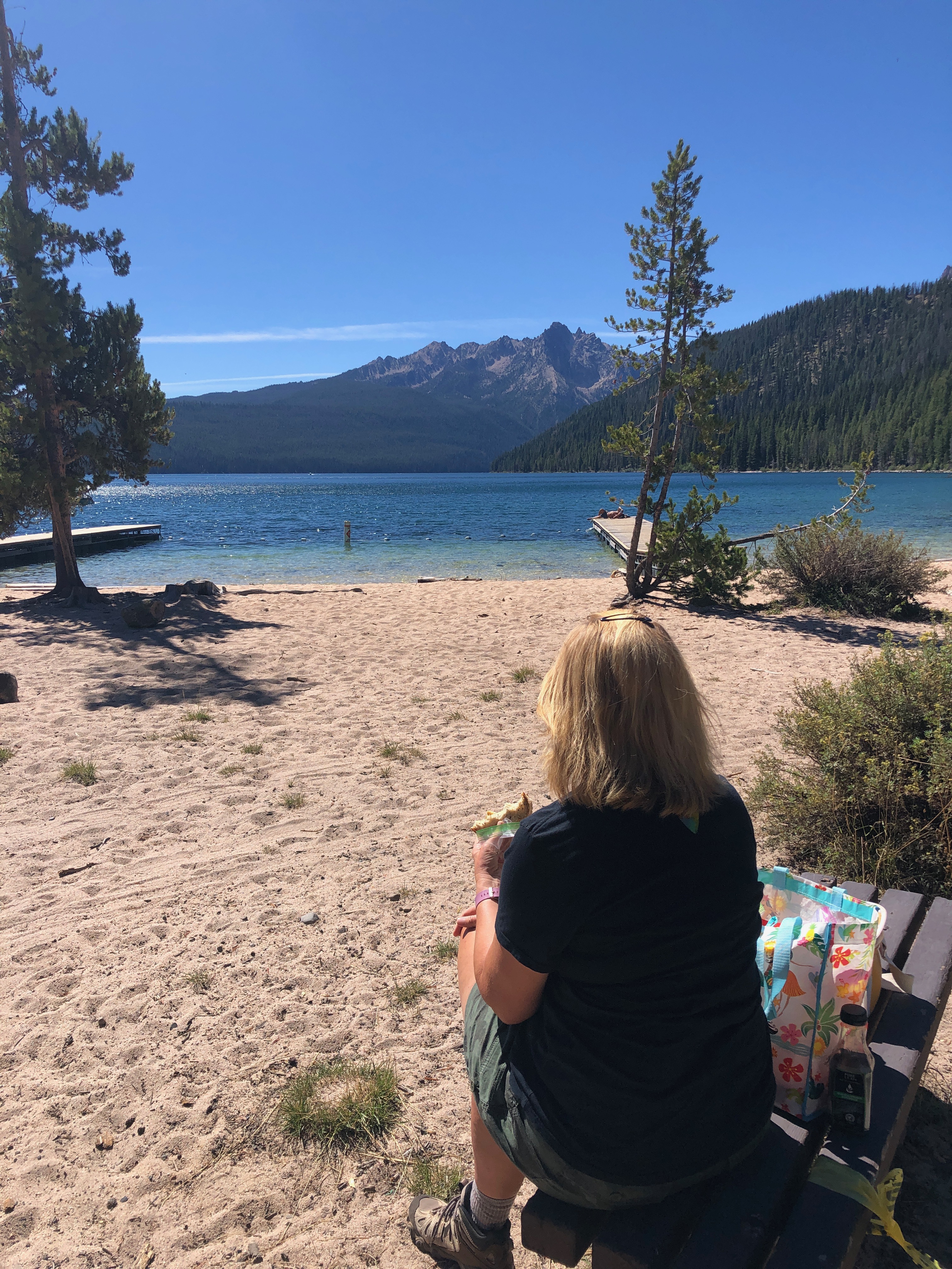 On another day we rode the twenty miles around Payette Lake, which took us through enviable lakeside neighborhoods and then into the State Park again to travel just along the lake’s edge. My new e-bike allows me to keep up with Steve and makes these excursions so much fun!