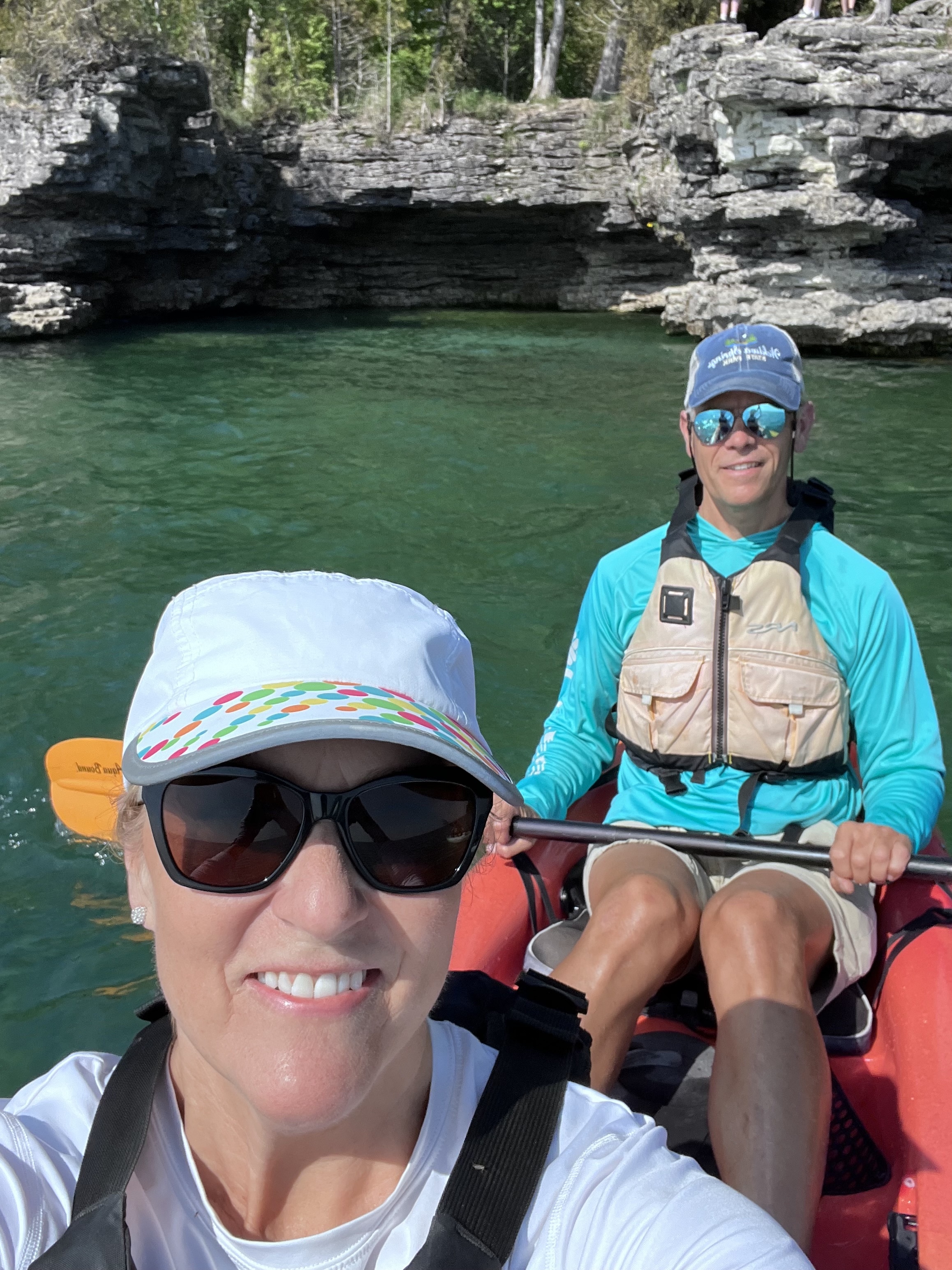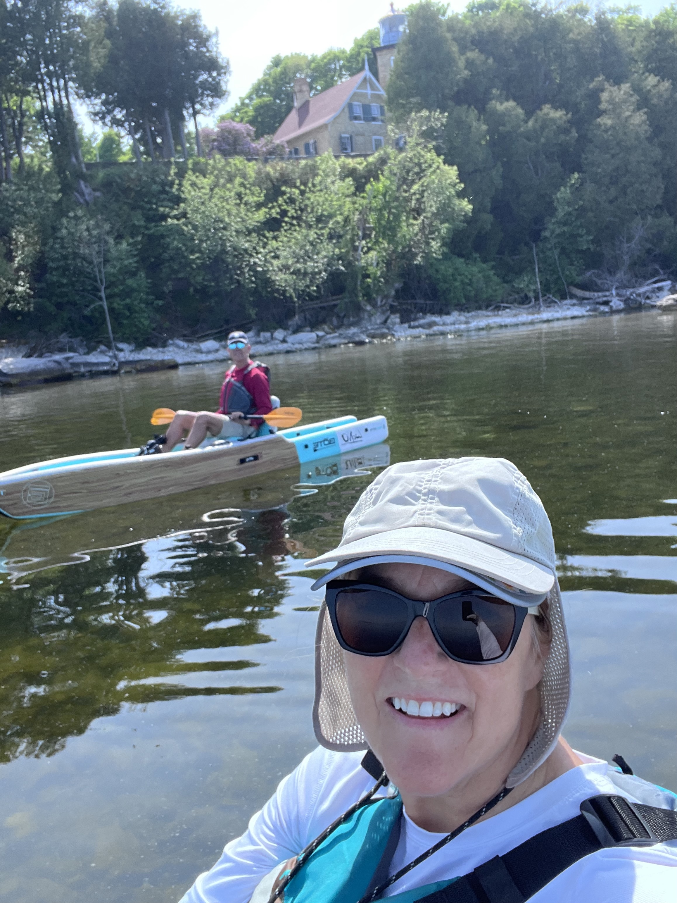 Our kayak at Mirror Lake was so awesome that we returned with Peggy and Dave to try it again. Peggy and I kayaked into the narrows on a clear and sunny morning while the boys tried their hand at fishing. We had a successful paddle and the guys caught nothing.