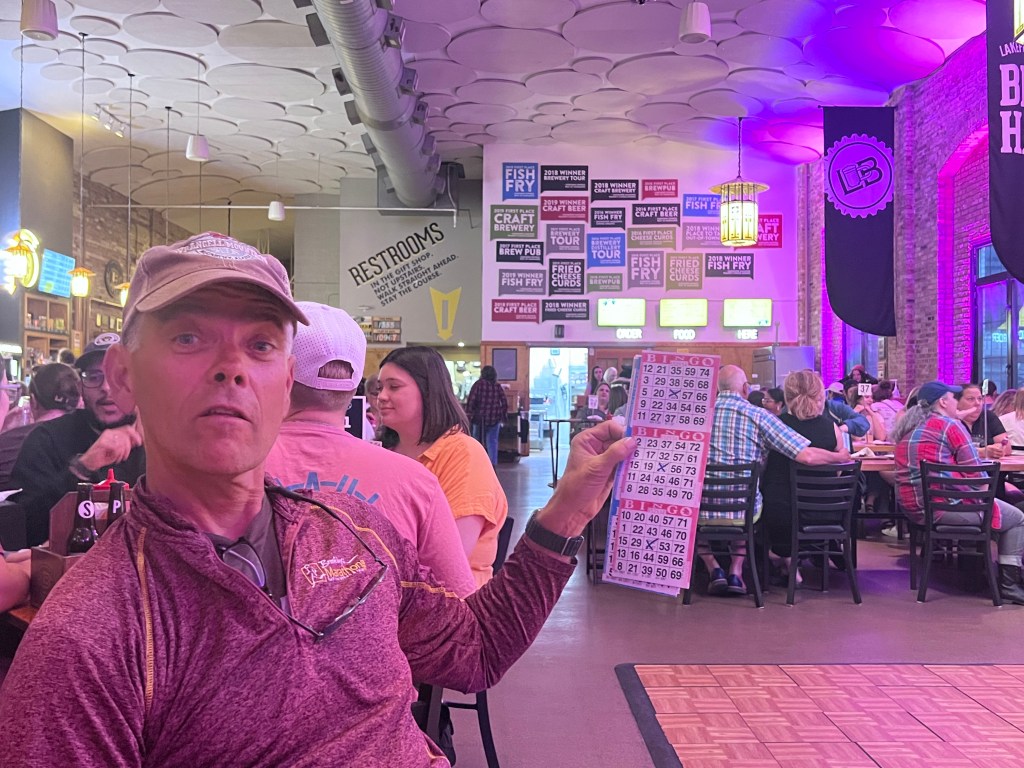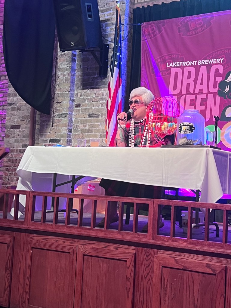We were also determined to check out some of Milwaukee’s legendary breweries. Our first stop was a tour of Lakefront Brewery which is actually along the riverfront in downtown. We enjoyed the tour, which ended just in time for us to join in on Drag Queen Bingo which was being held at the brewery. We didn’t get a Bingo, but we sure enjoyed ourselves!