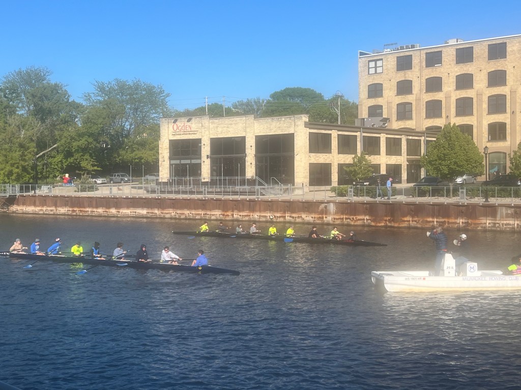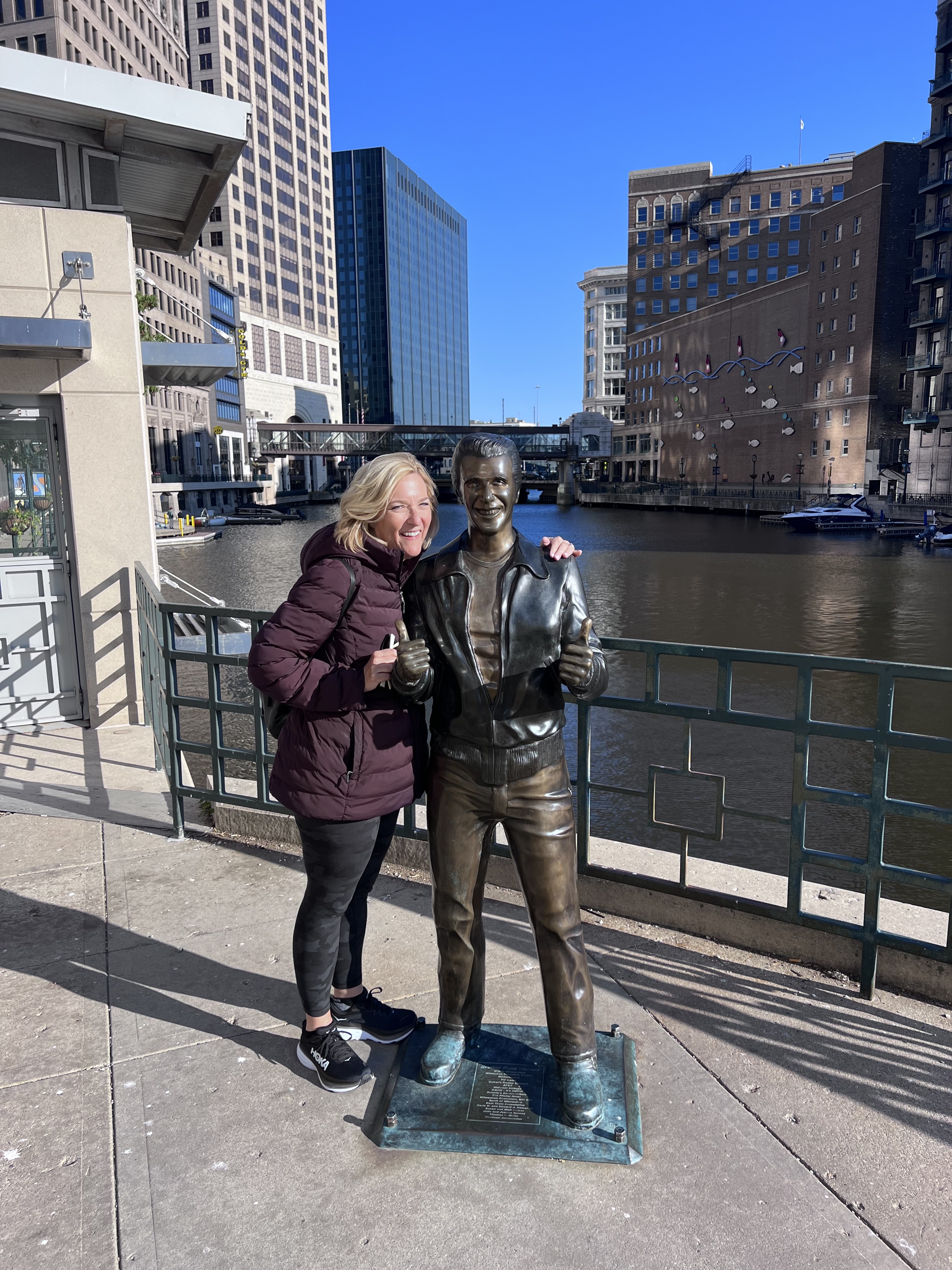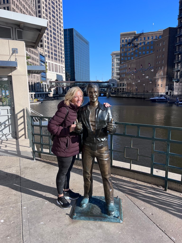 We finished our time in Milwaukee back at the Lakefront Brewing, followed by a stroll along the riverfront to watch the scullers. Ultimately we were on the search for the Bronz Fonz, as we both grew up on Happy Days and couldn’t come to Milwaukee without meeting the Fonz “in person.”